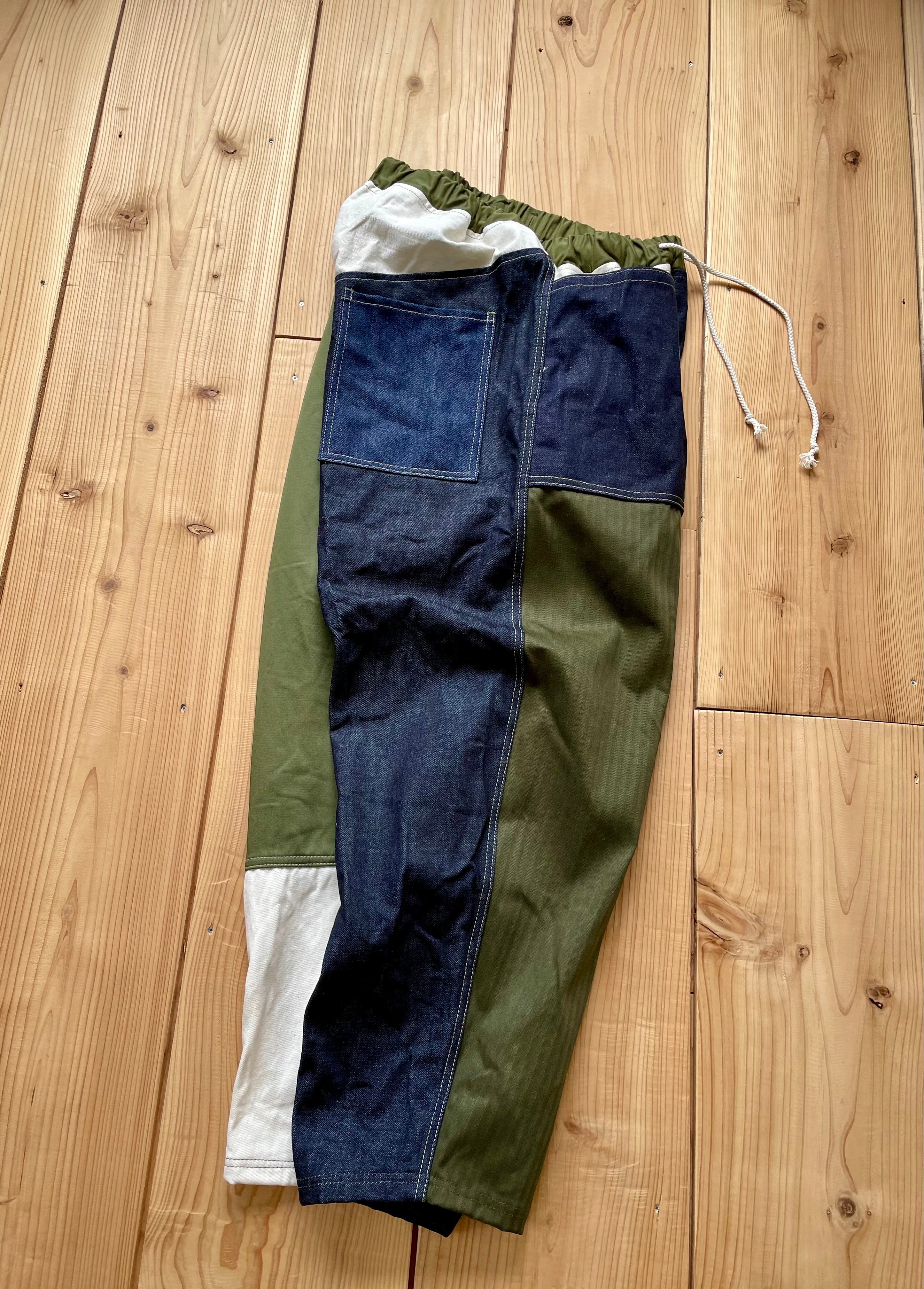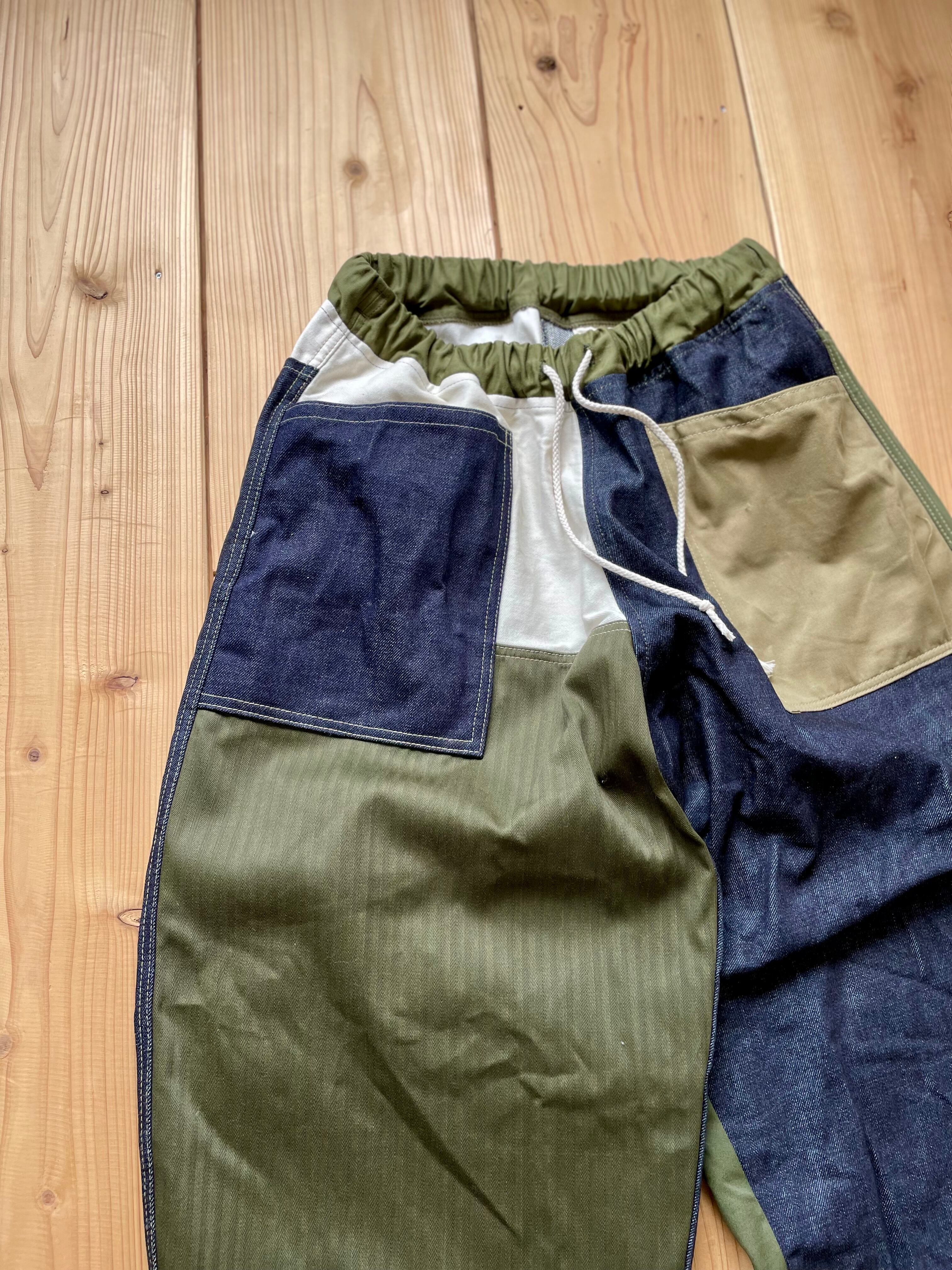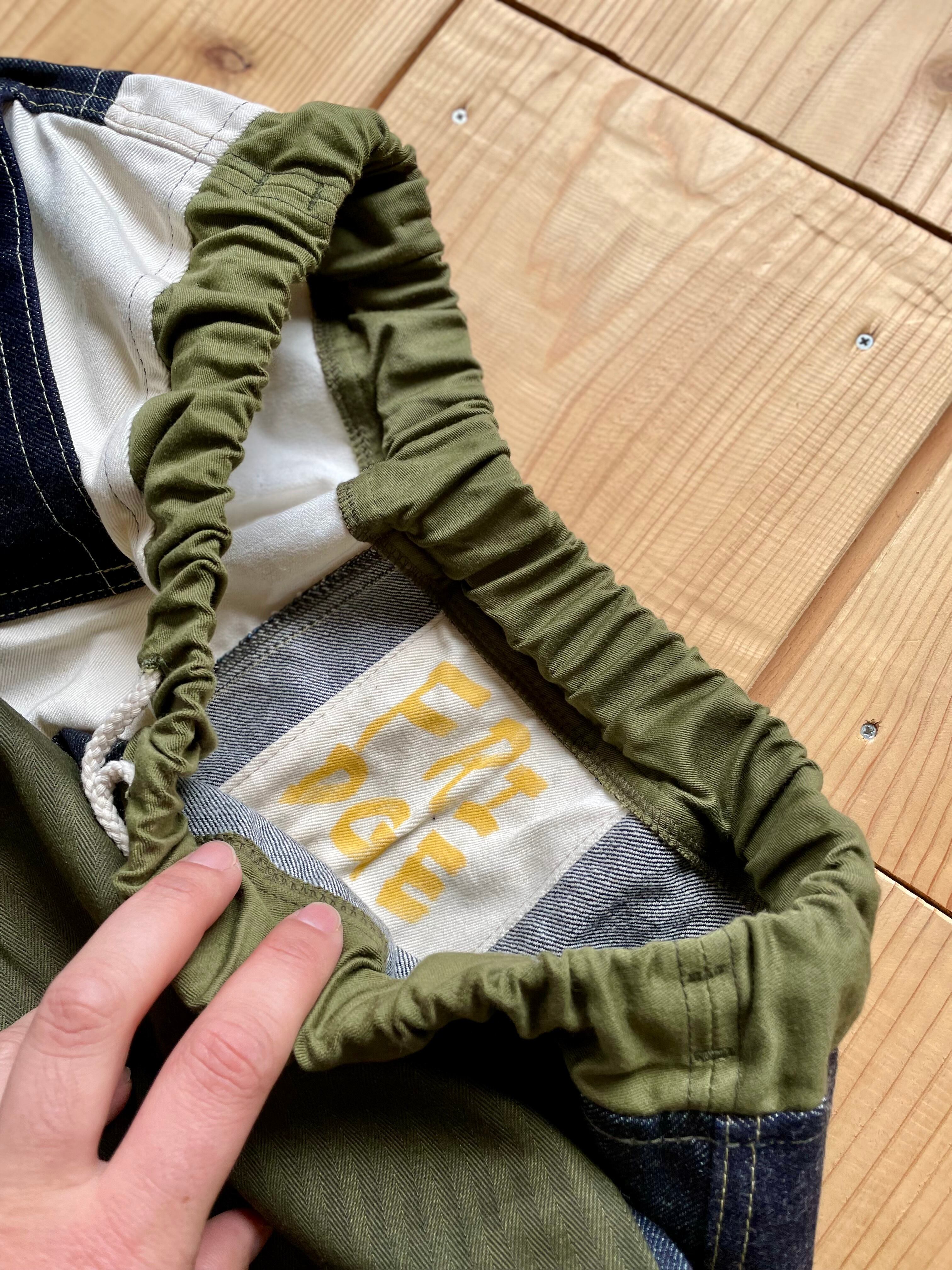 サイズはメンズL〜XLくらいのウエストゴム仕様。スソを折って履いて女性にも人気です。