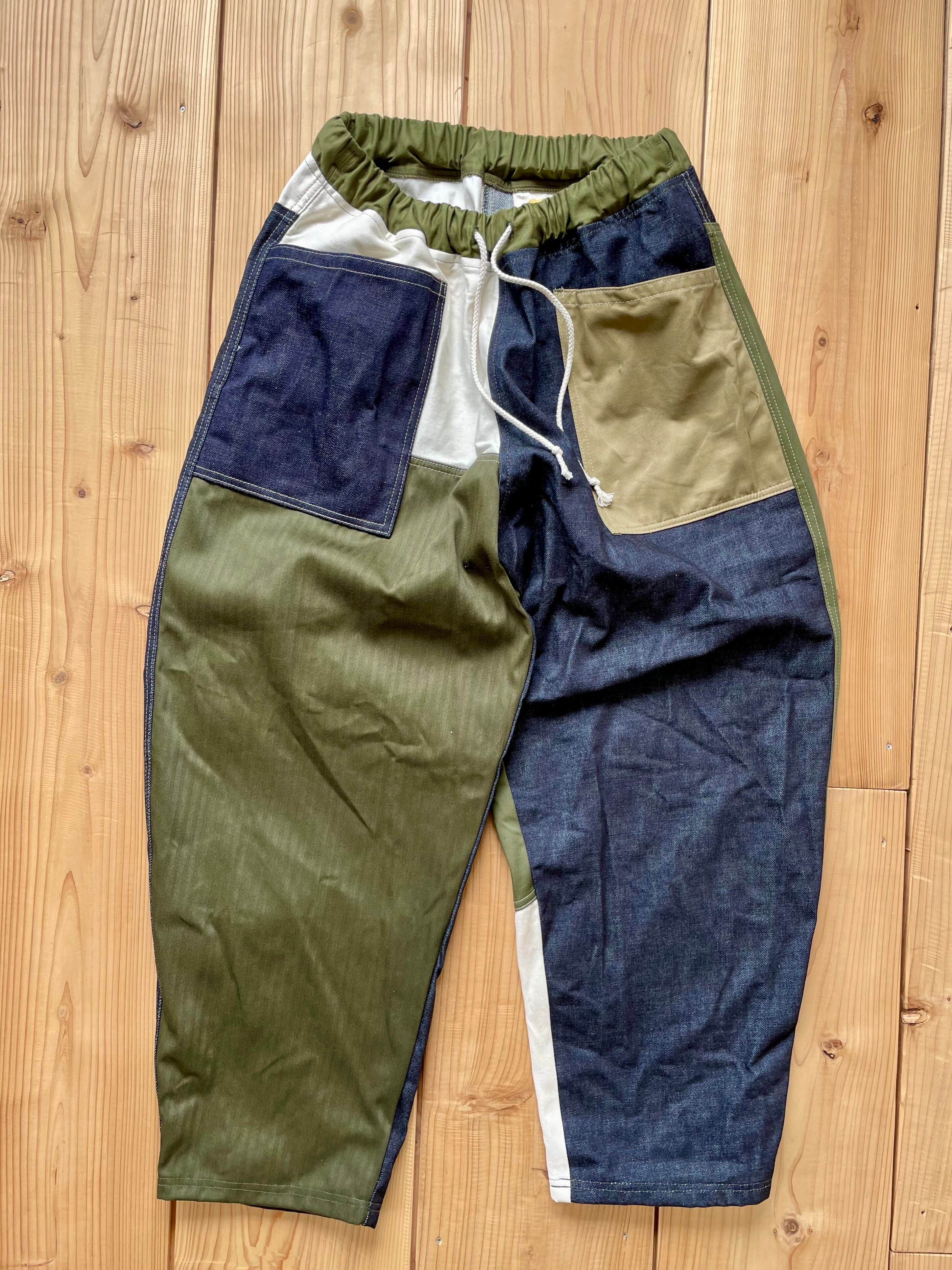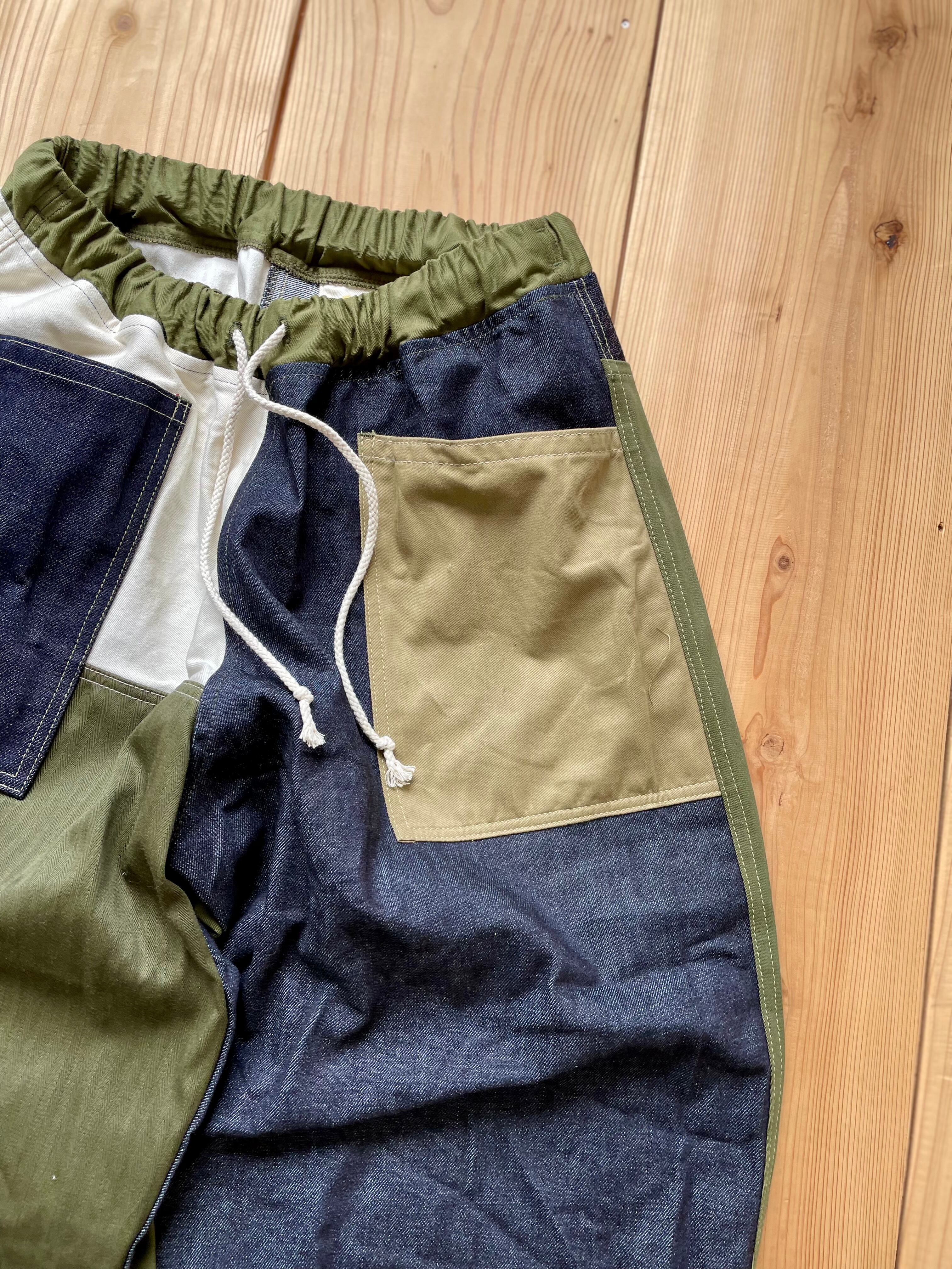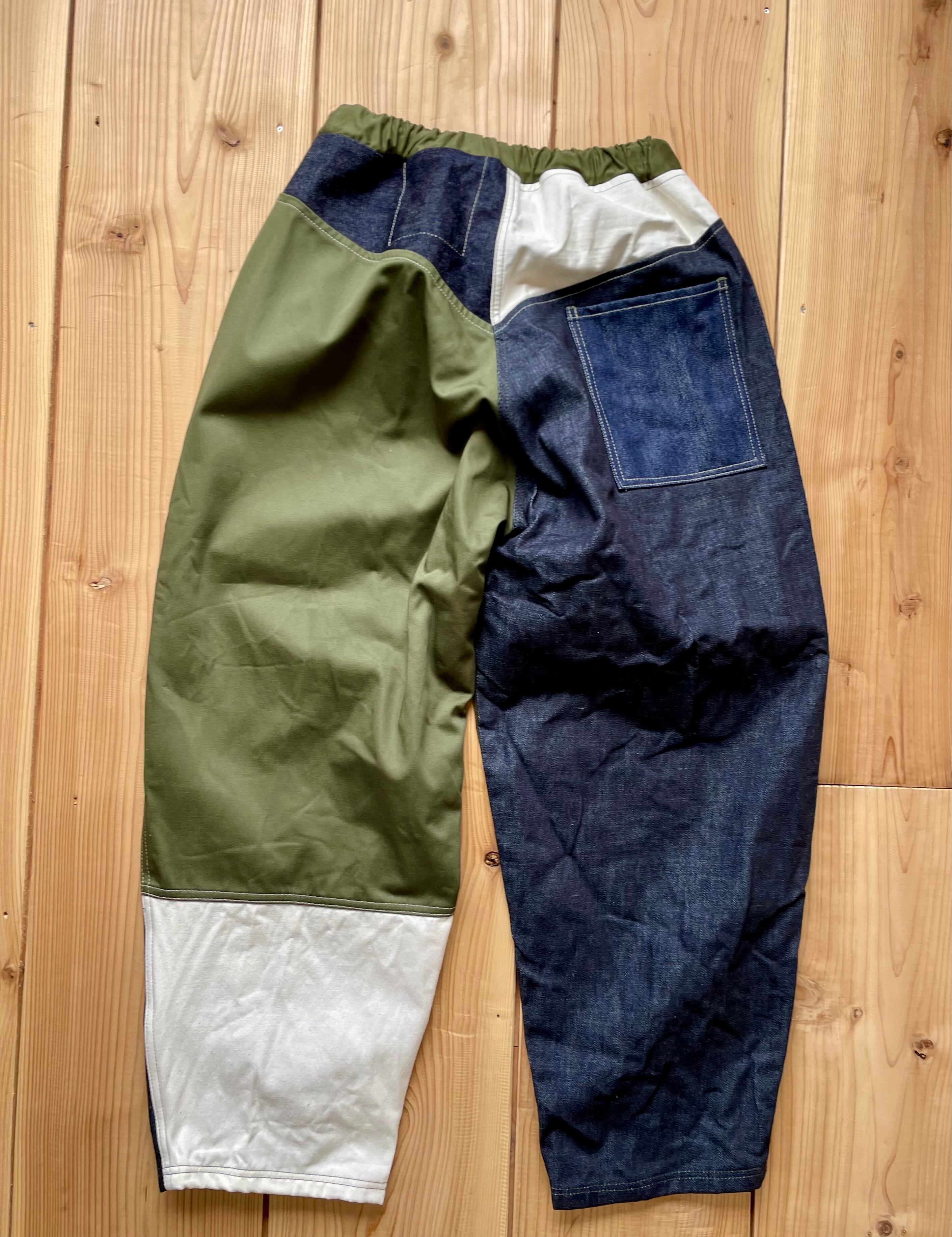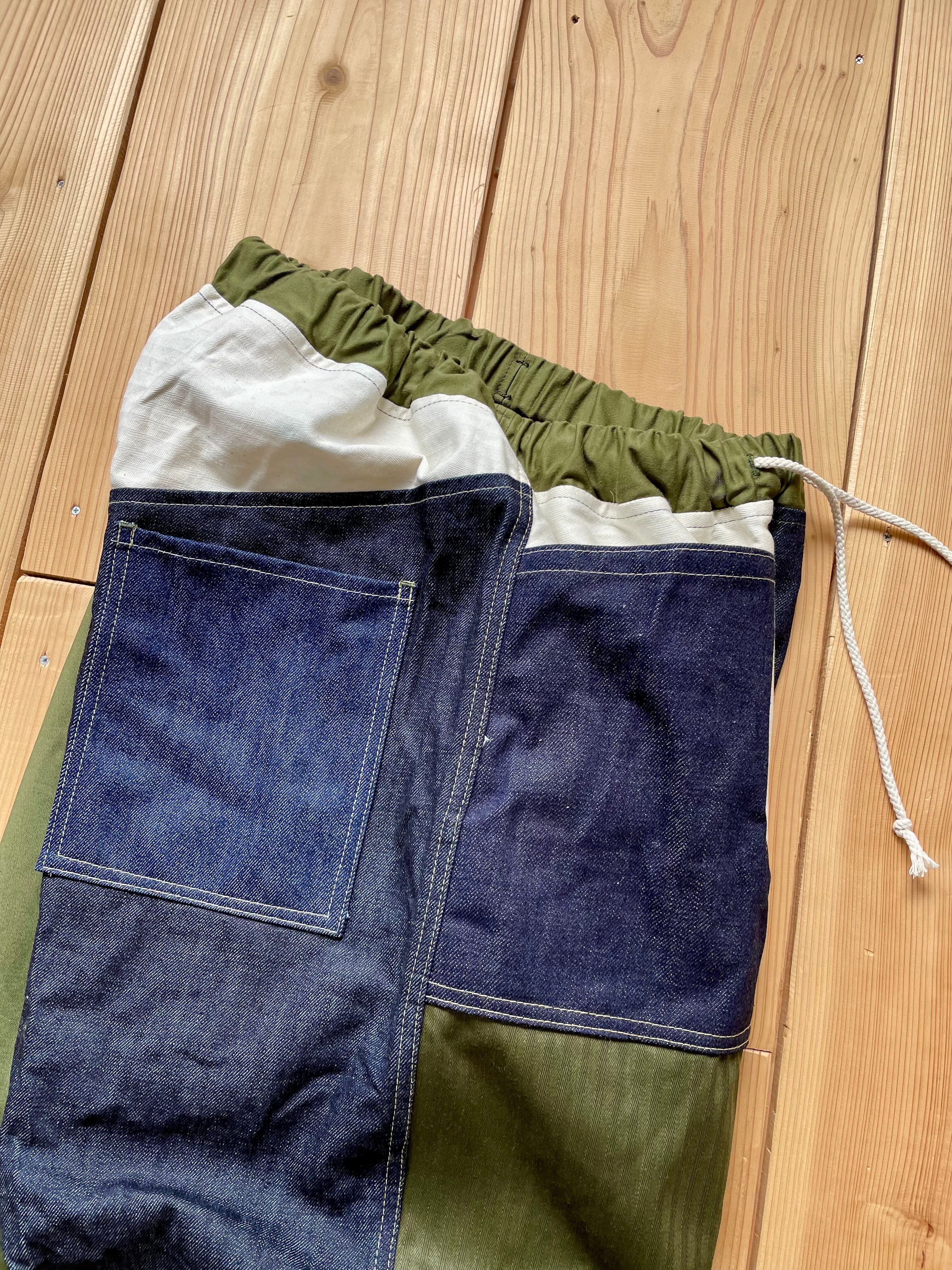 サイズはメンズL〜XLくらいのウエストゴム仕様。スソを折って履いて女性にも人気です。