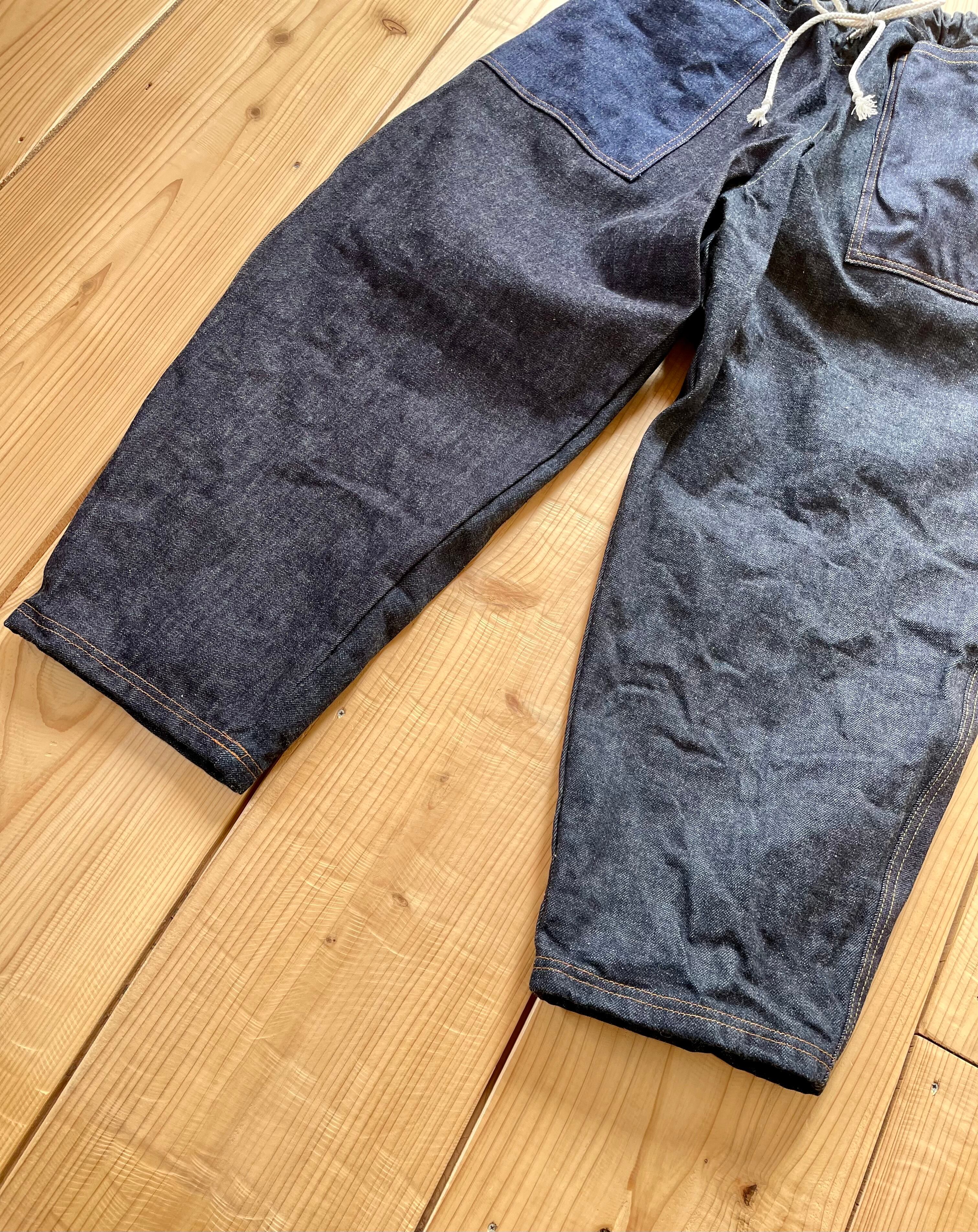 サイズはメンズL〜XLくらいのウエストゴム仕様。スソを折って履いて女性にも人気です。