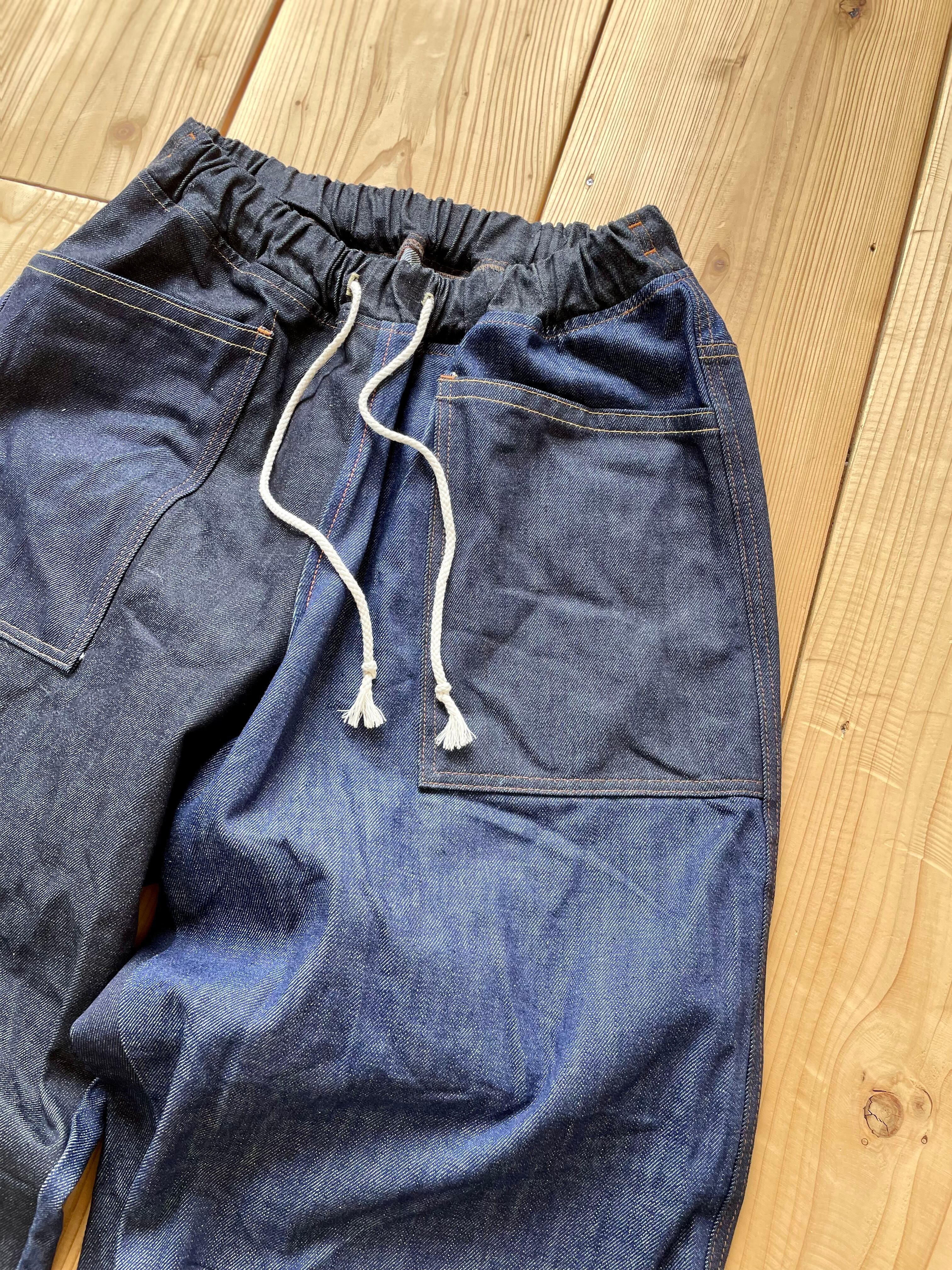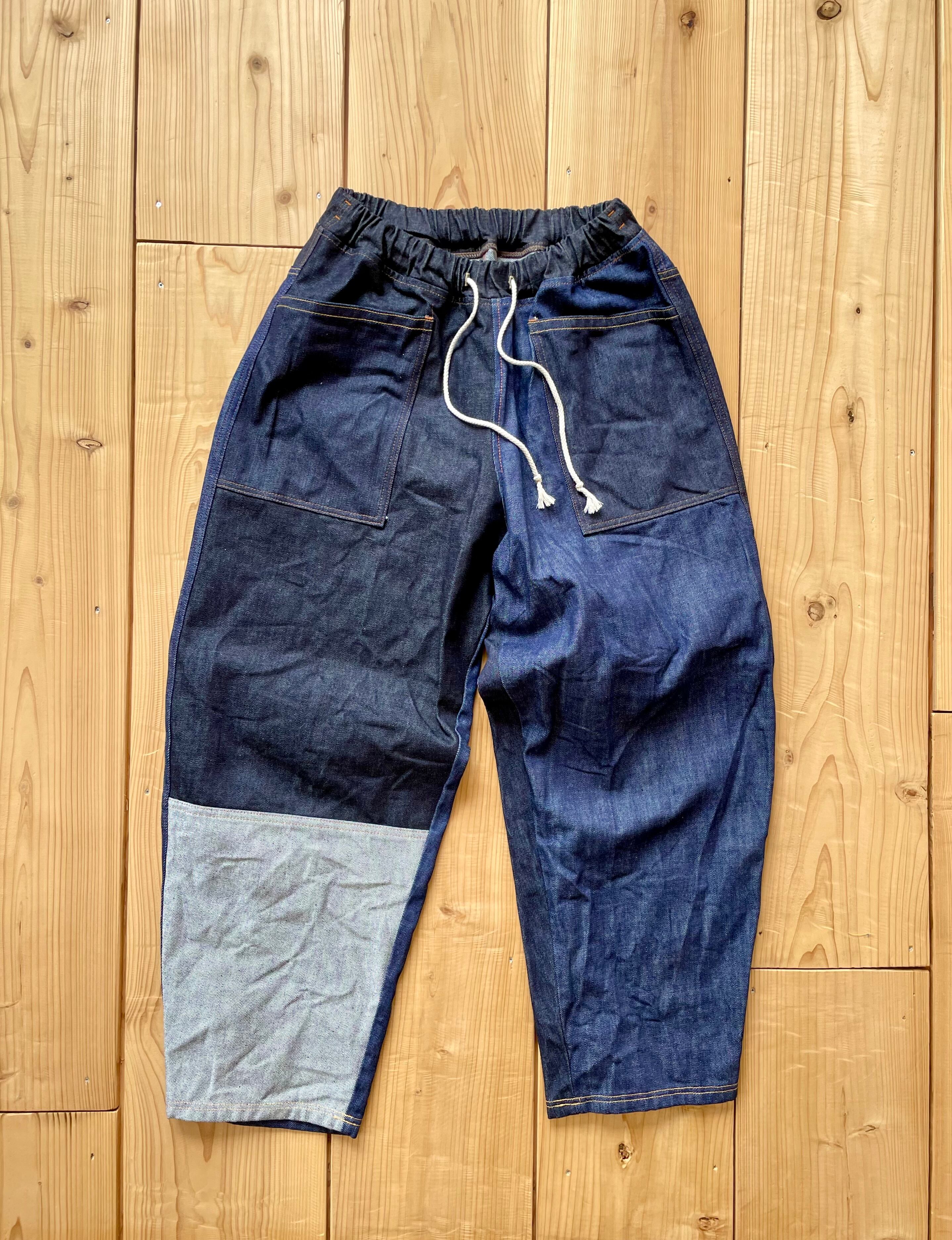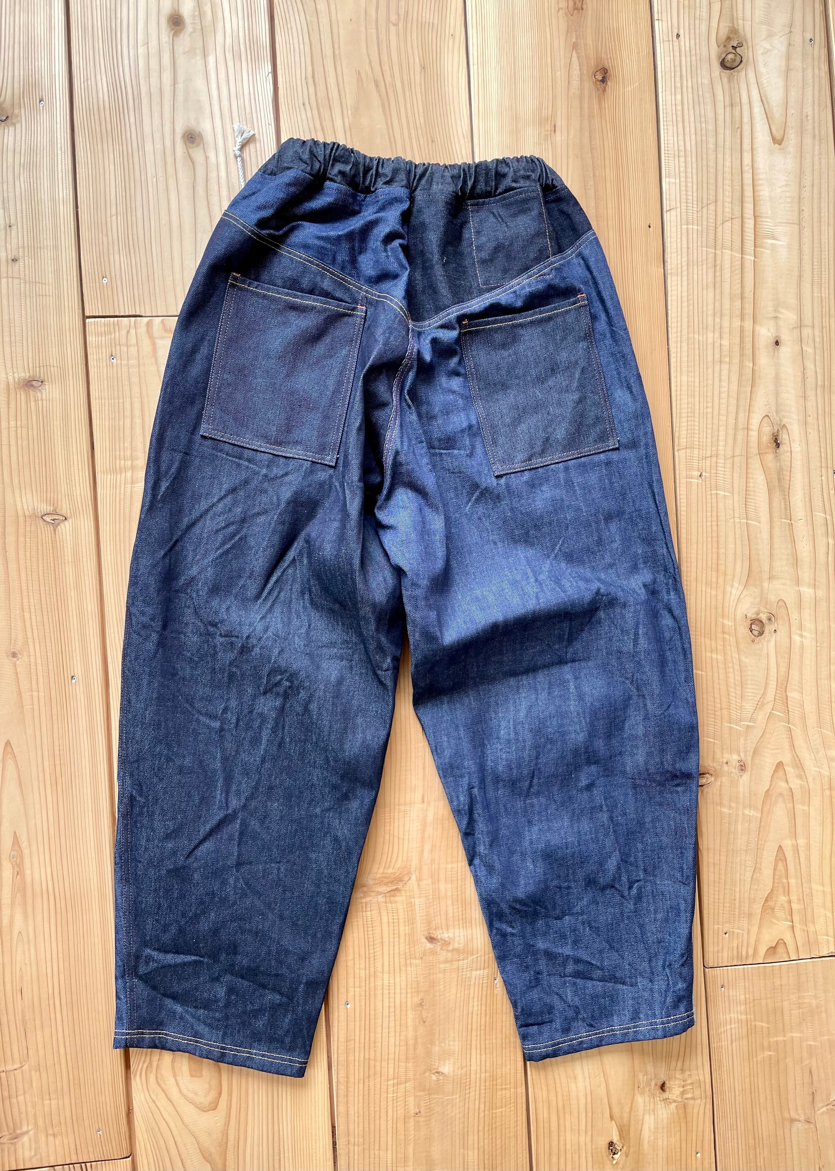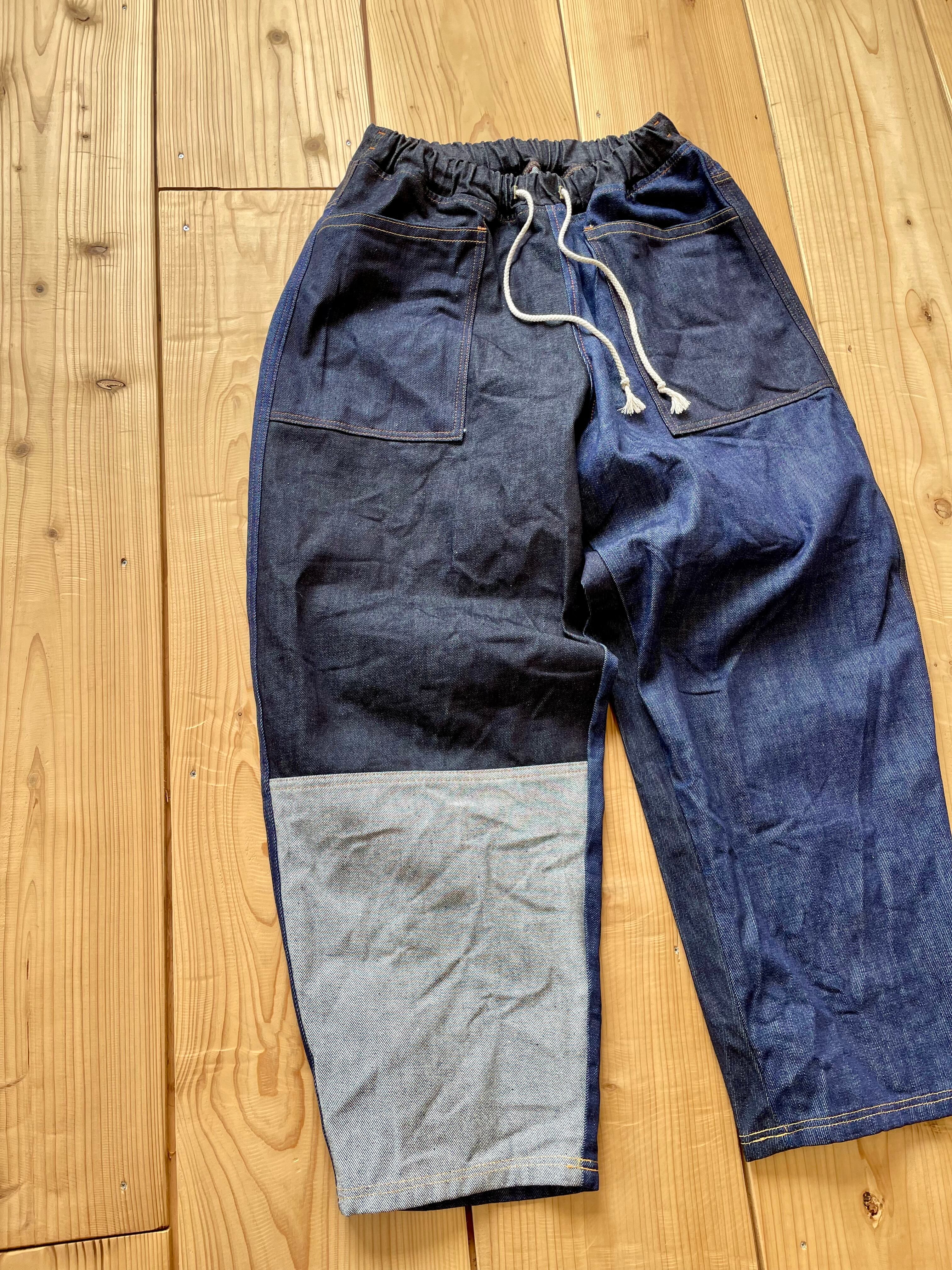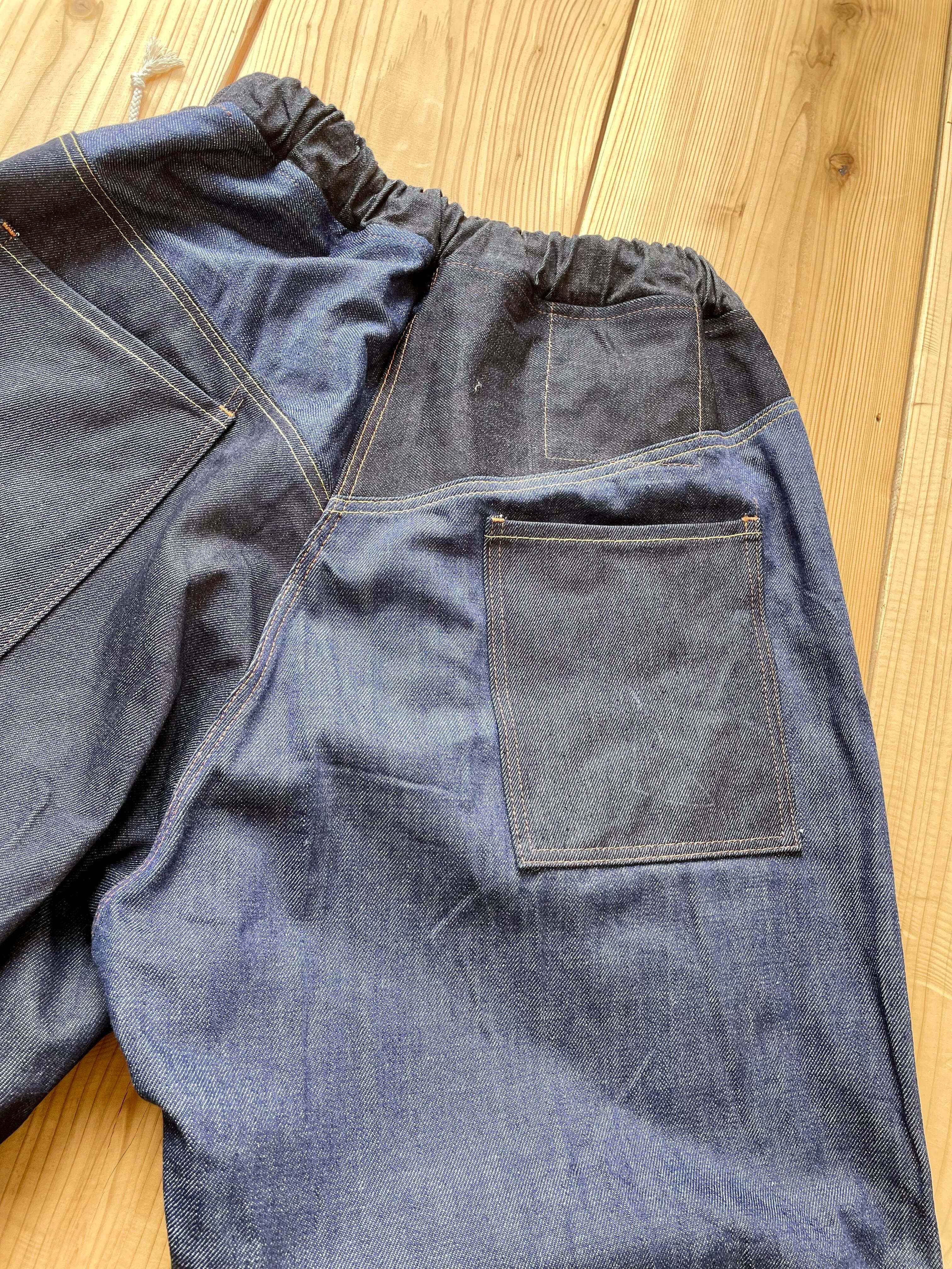 ロット違いの14〜15オンスくらいの中厚手な生地をパーツごとにランダムに使っています。