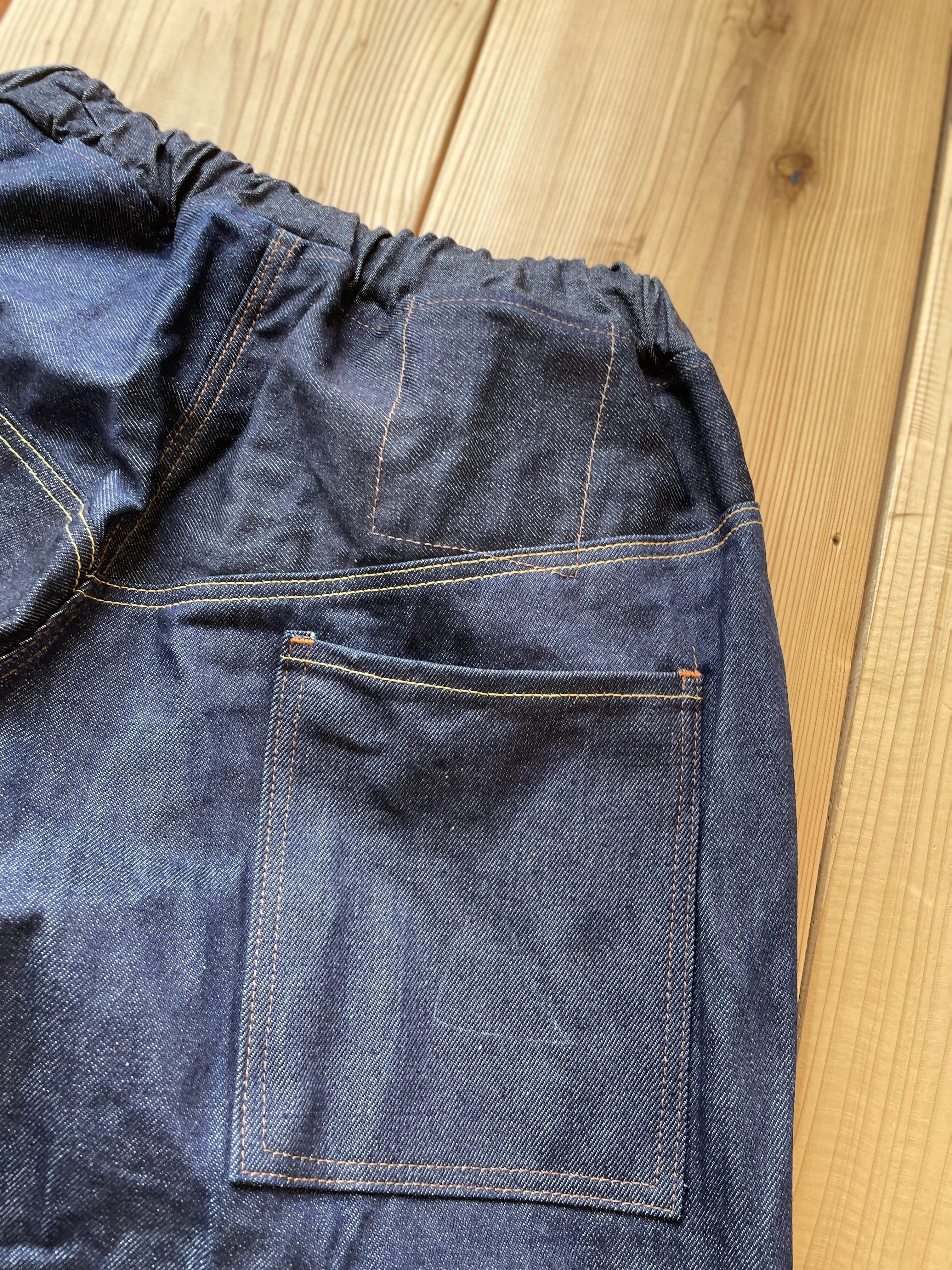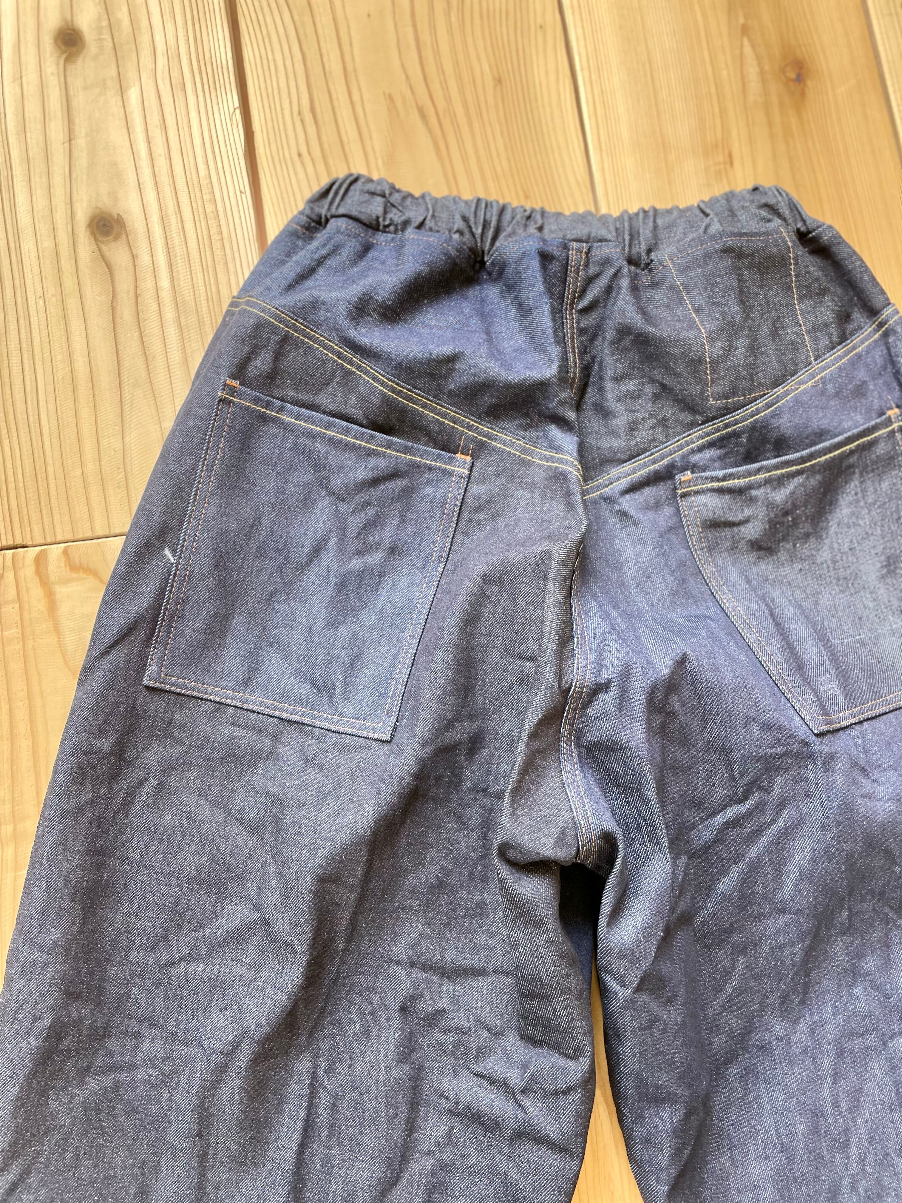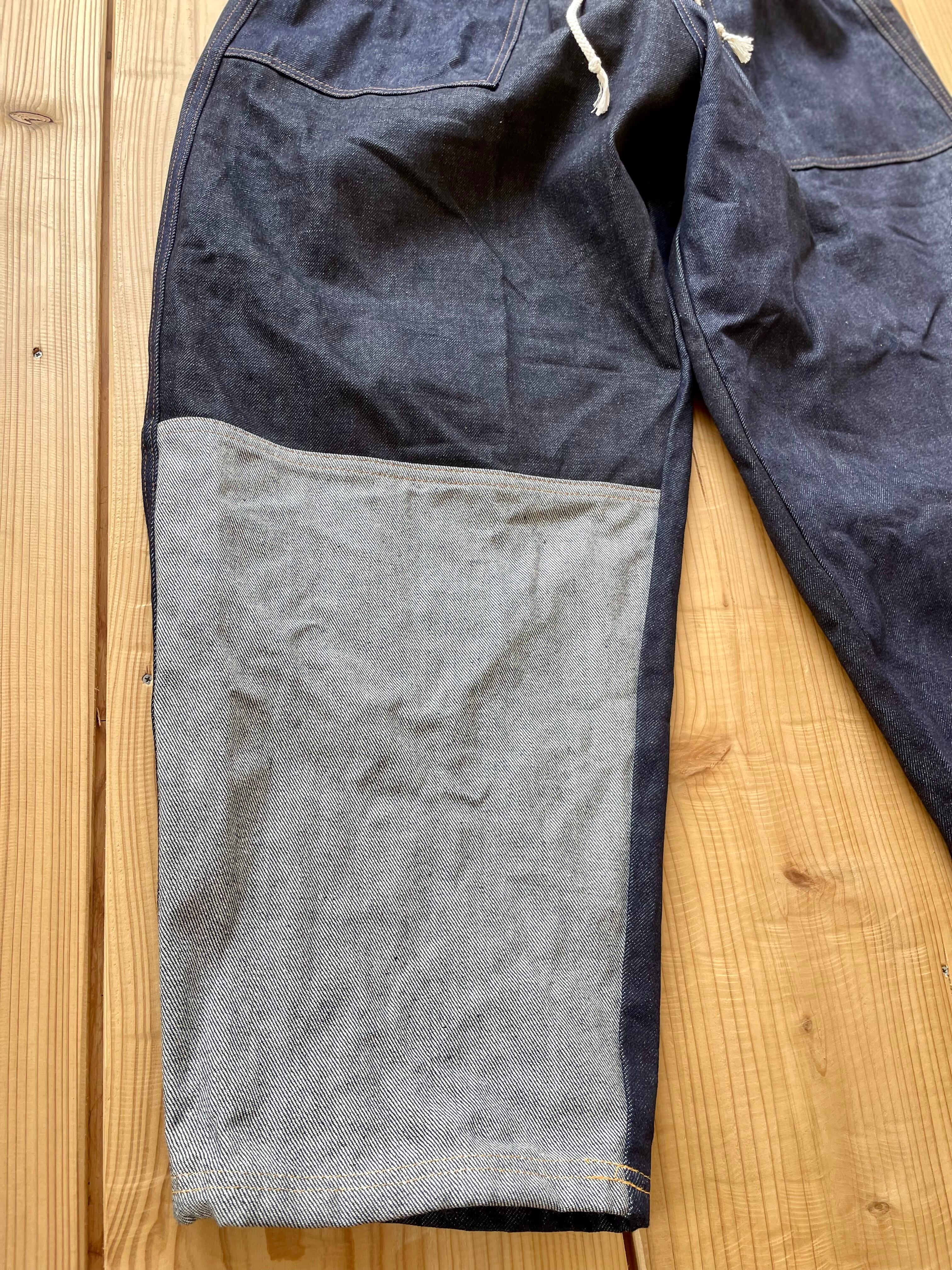 ロット違いの14〜15オンスくらいの中厚手な生地をパーツごとにランダムに使っています。