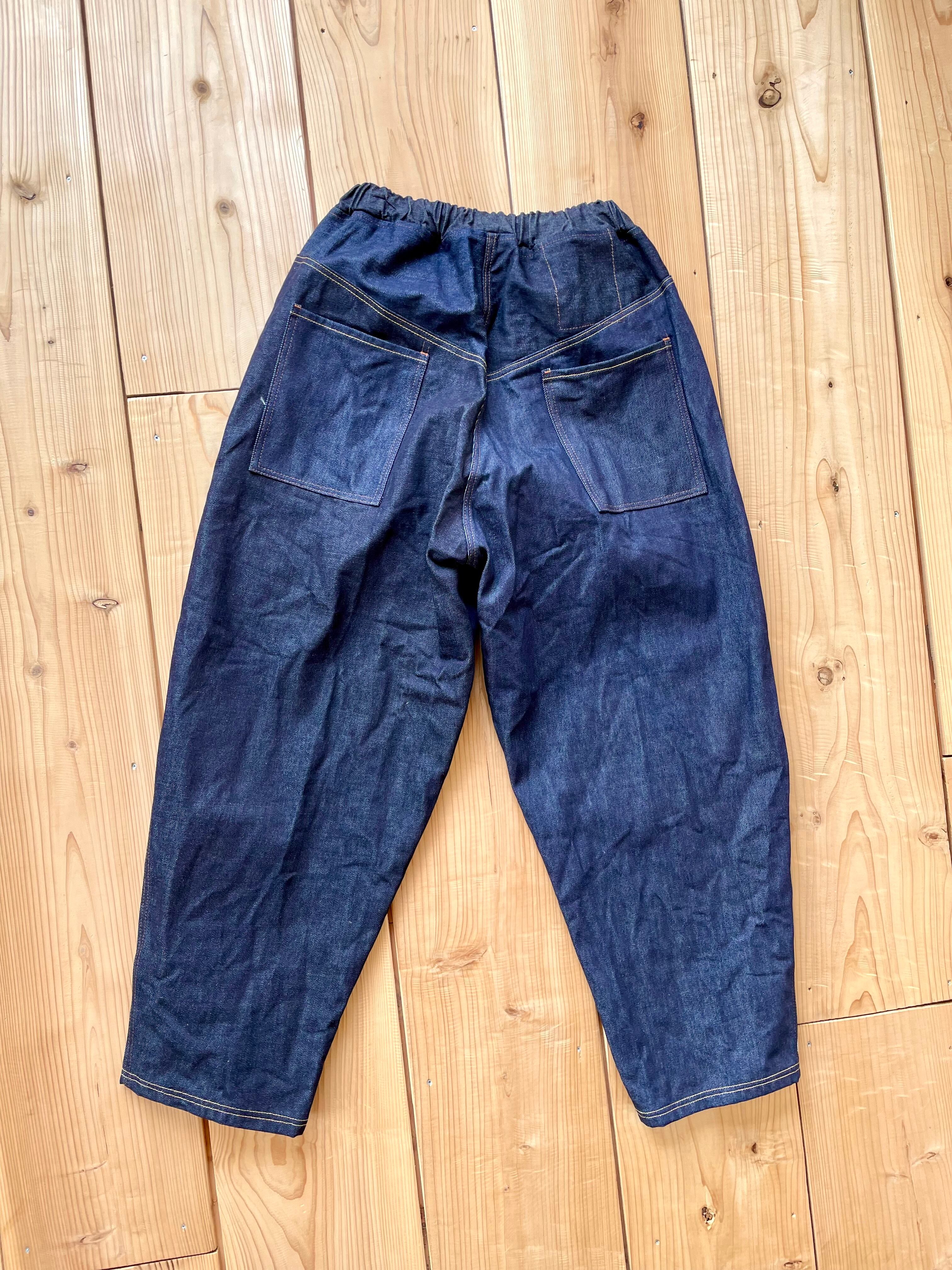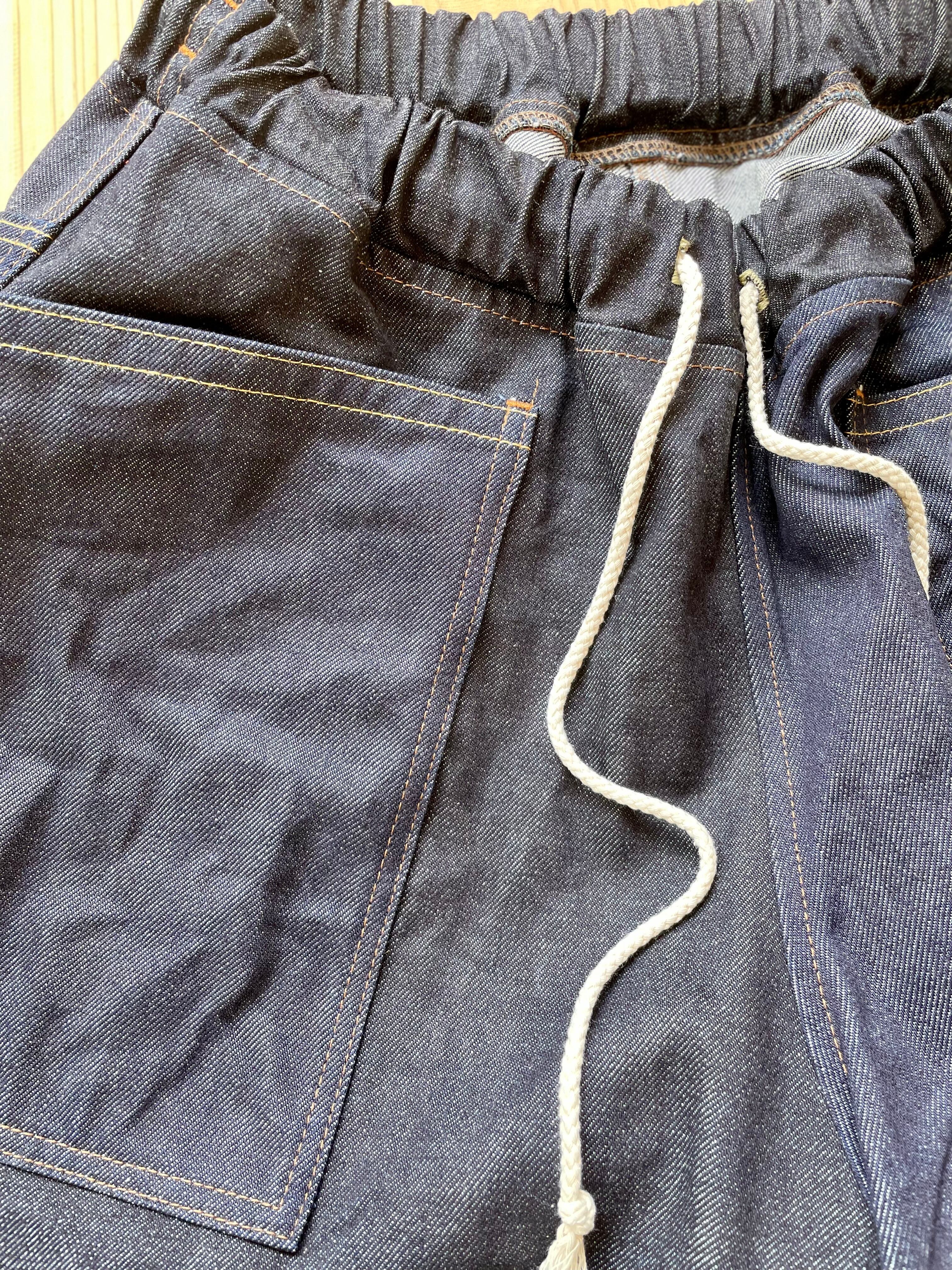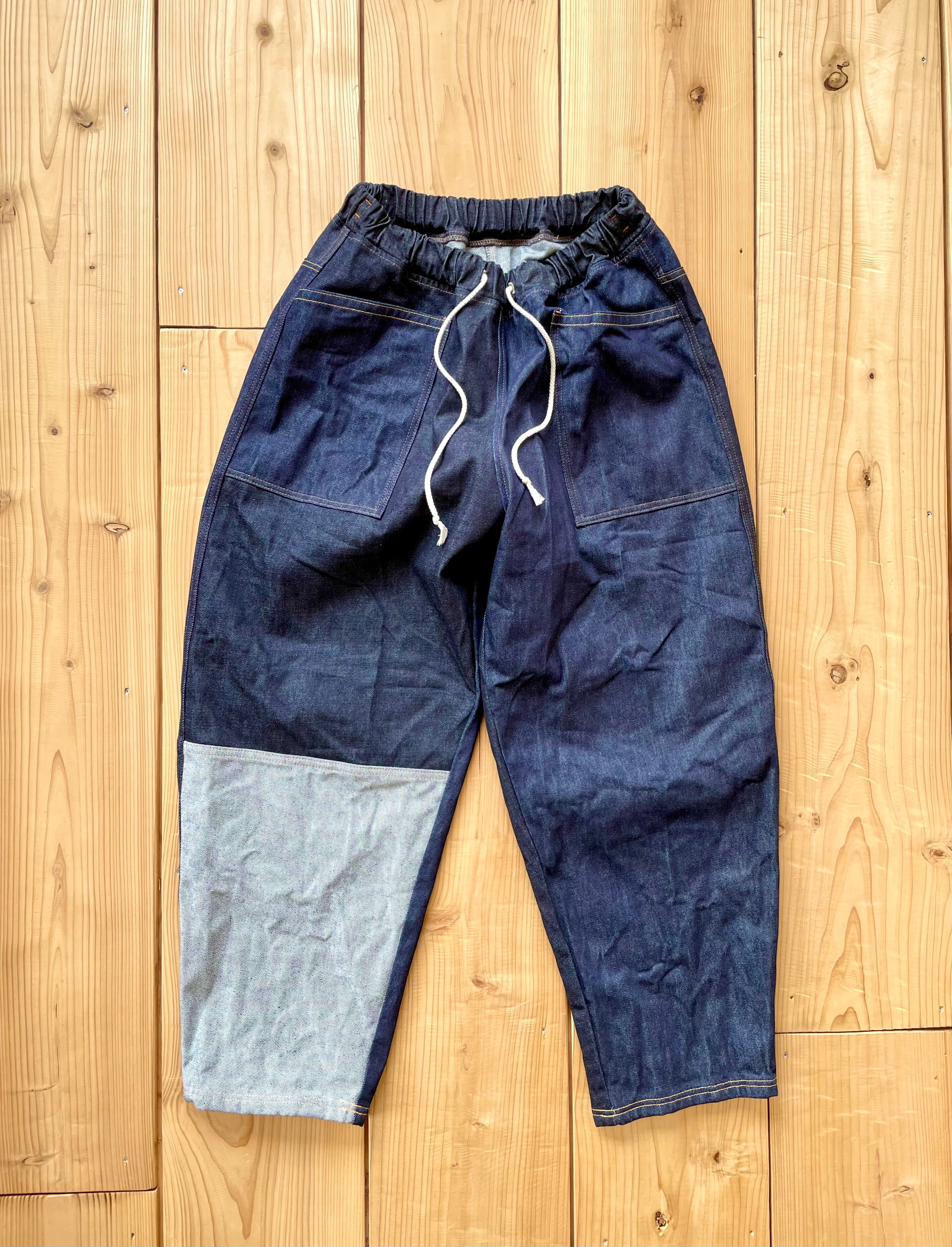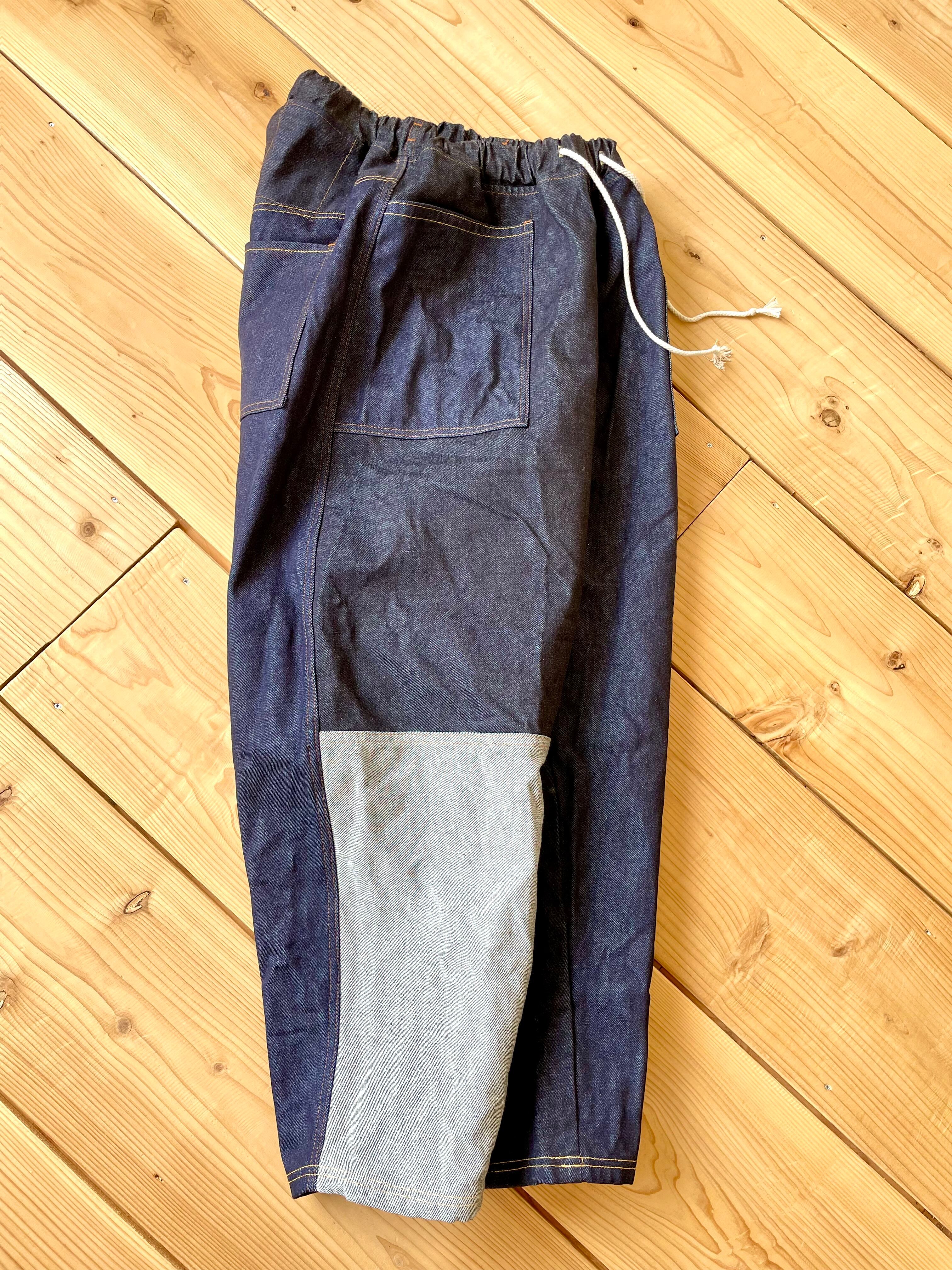 ロット違いの14〜15オンスくらいの中厚手な生地をパーツごとにランダムに使っています。