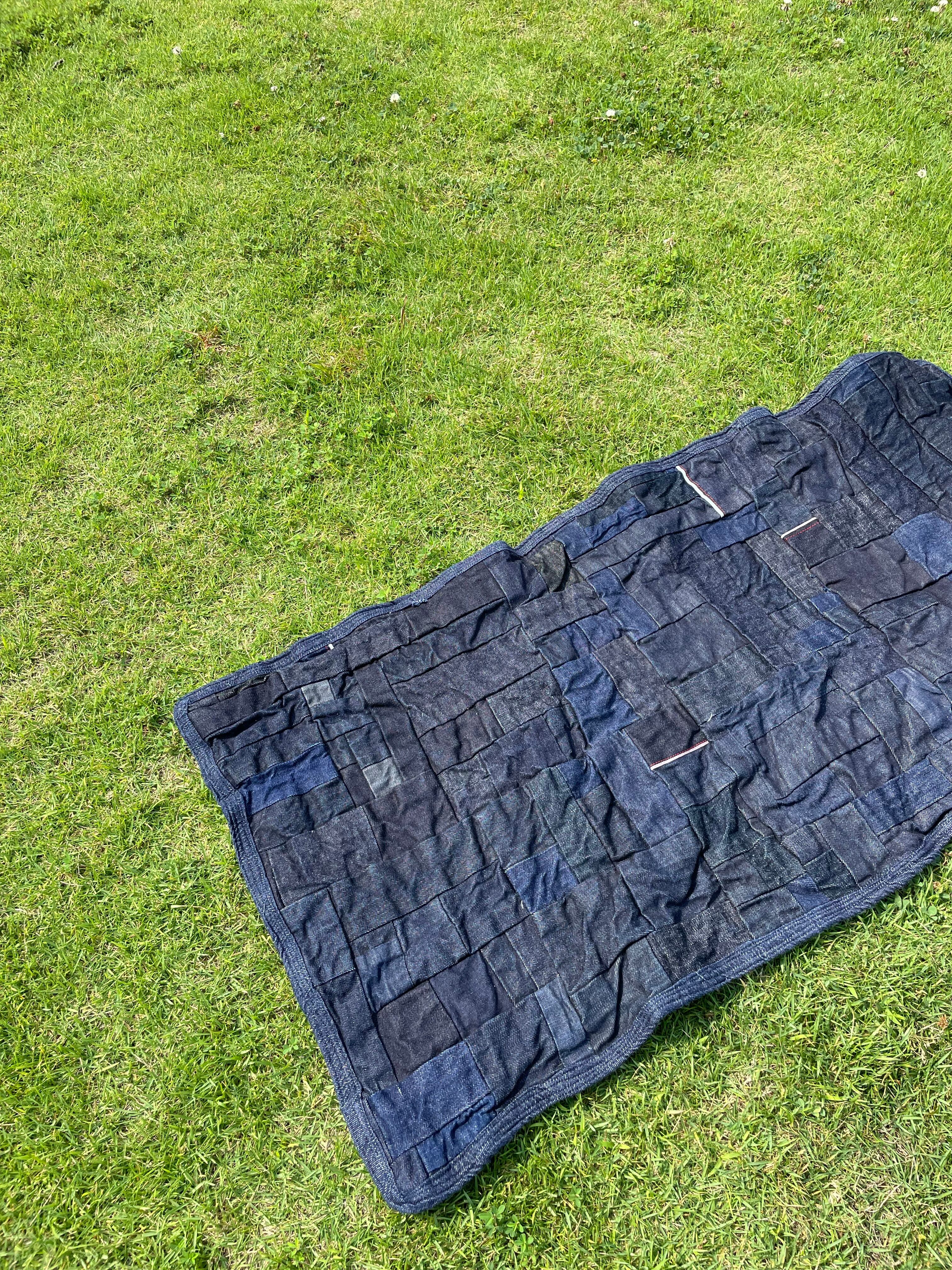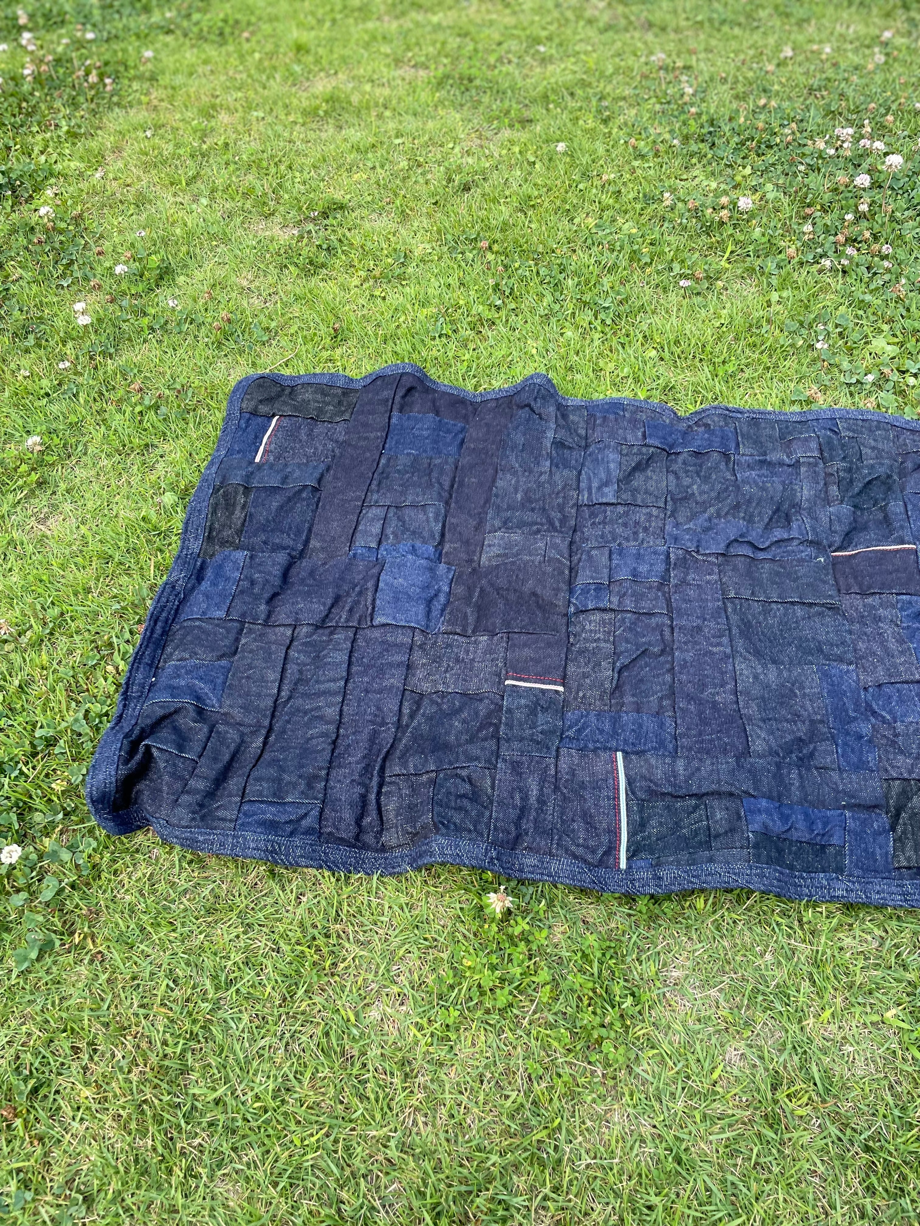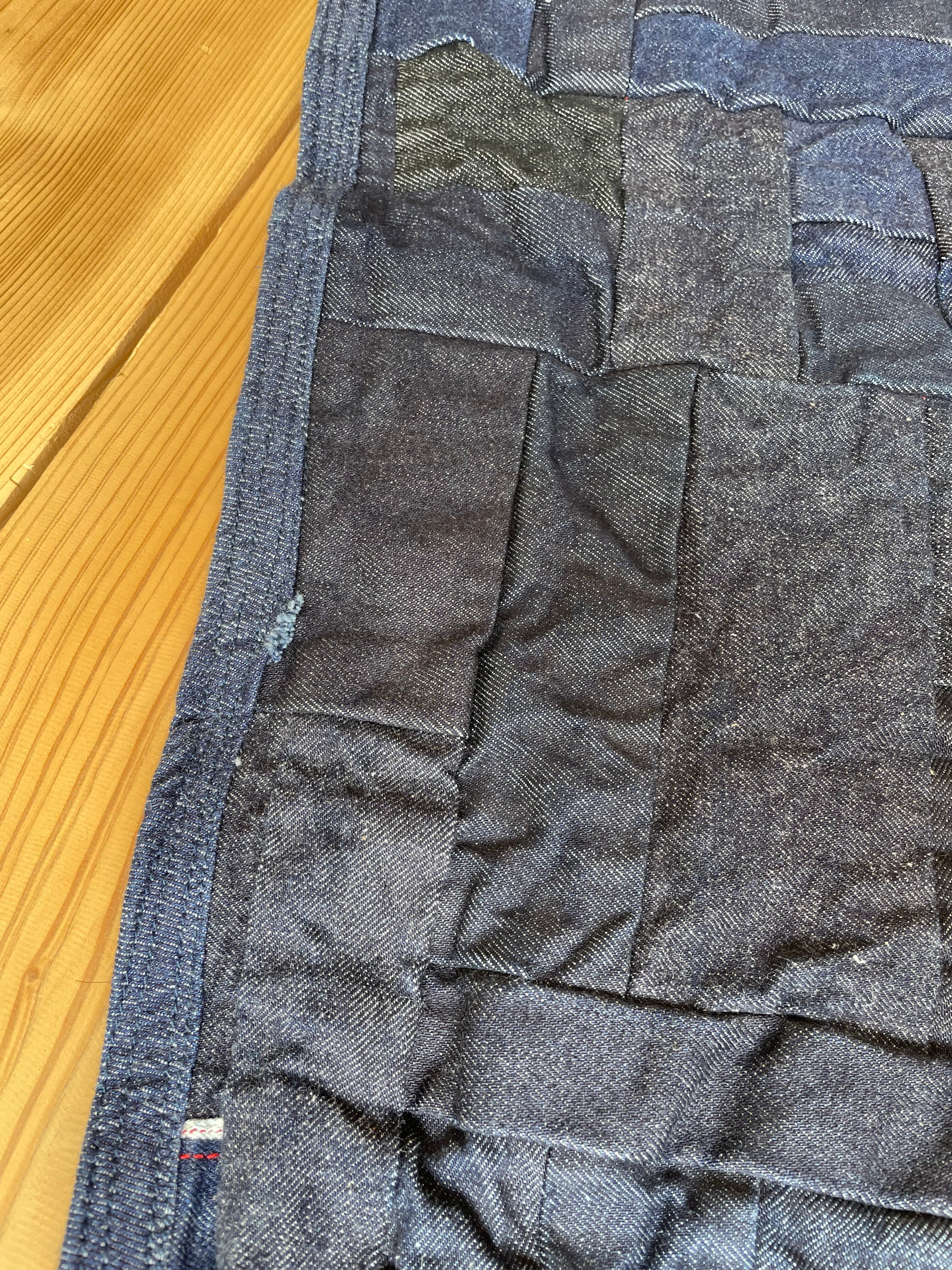 さまざまな国産デニム生地をひたすら縫い合わせた作品となります。