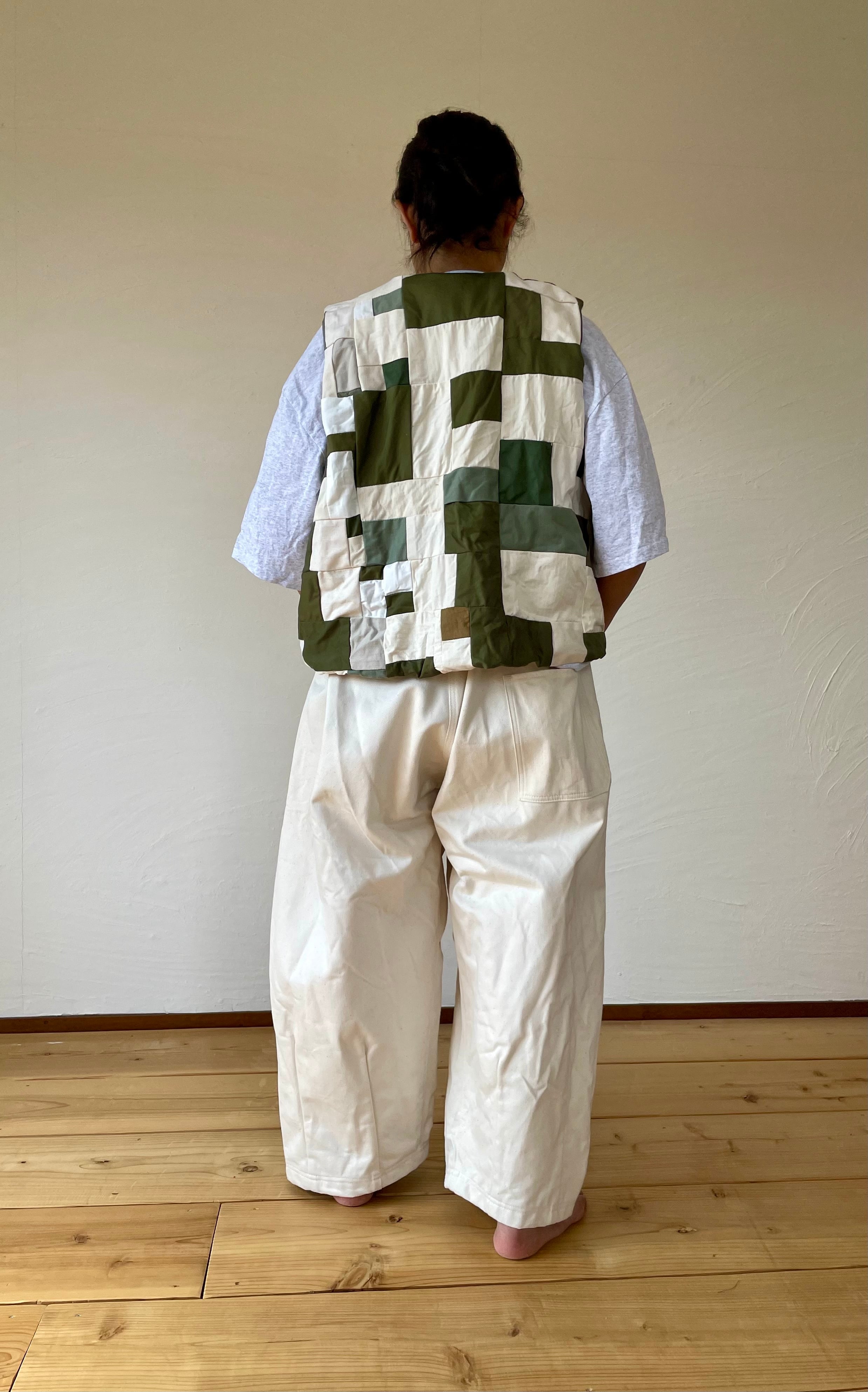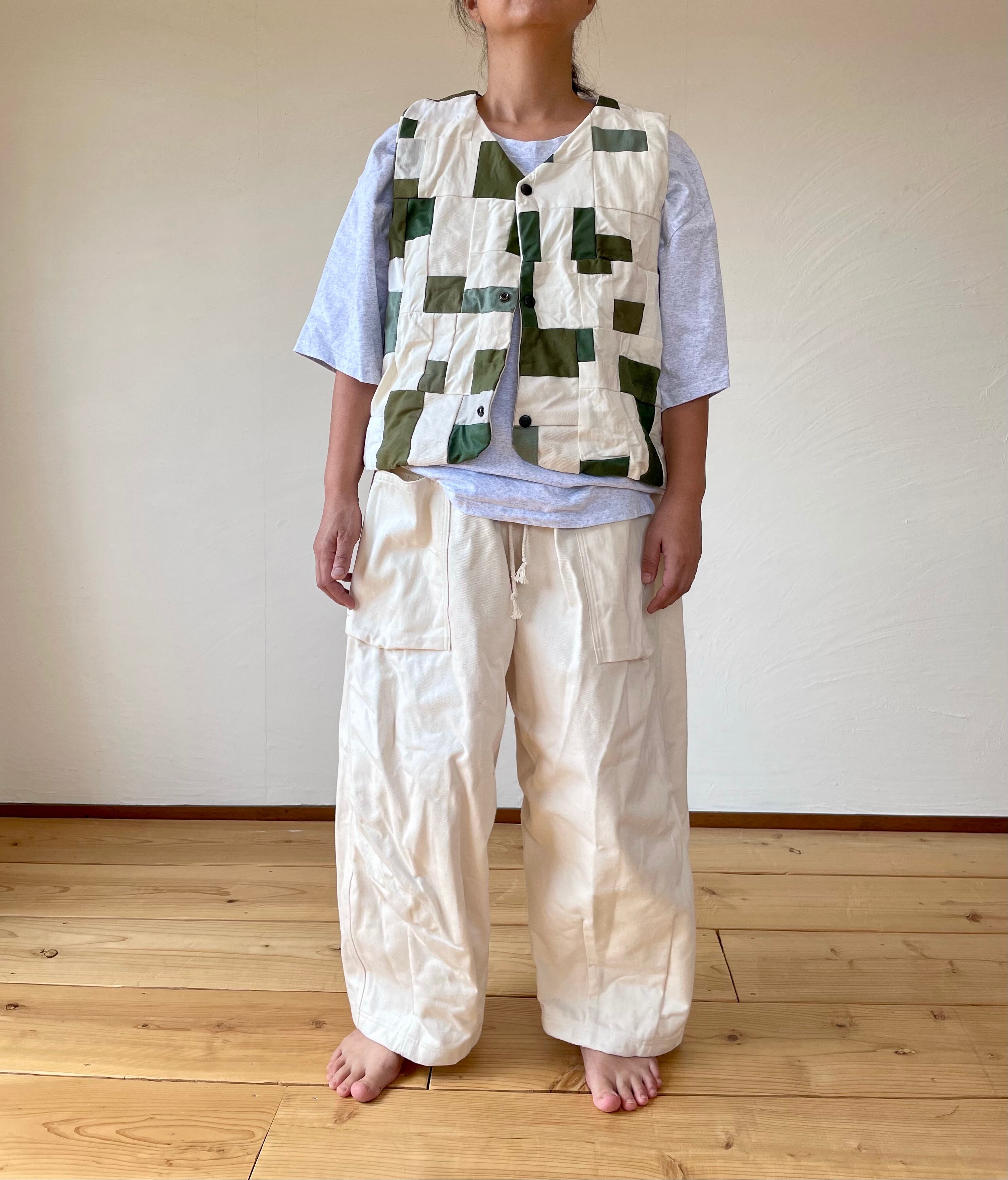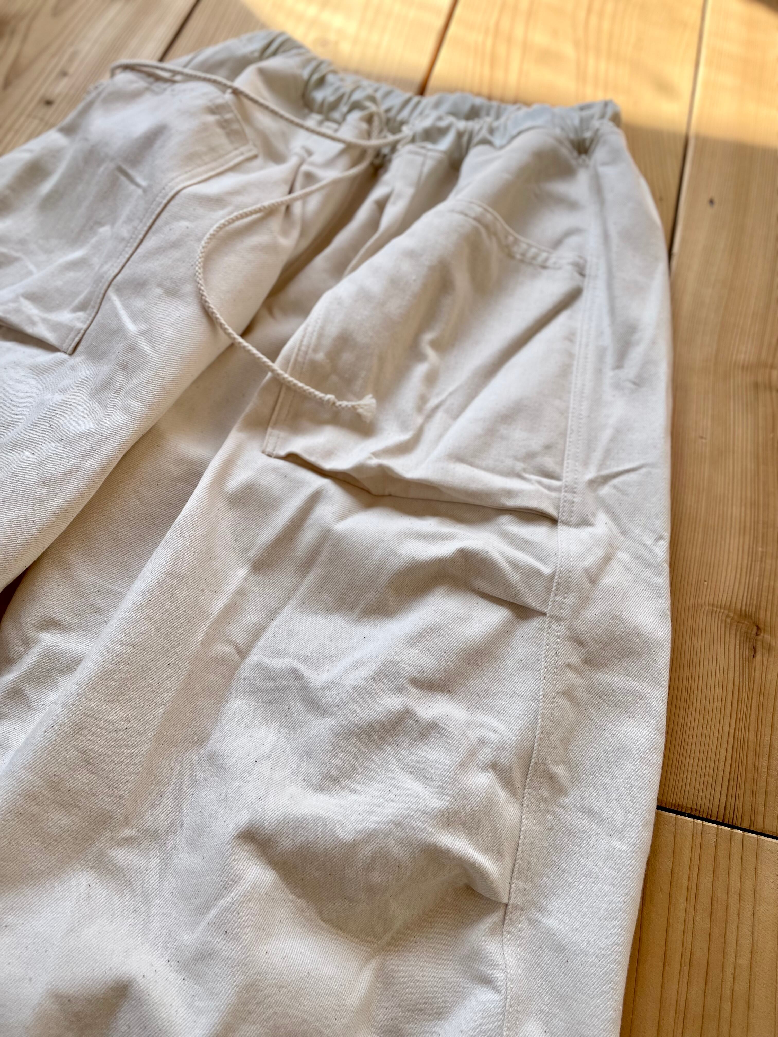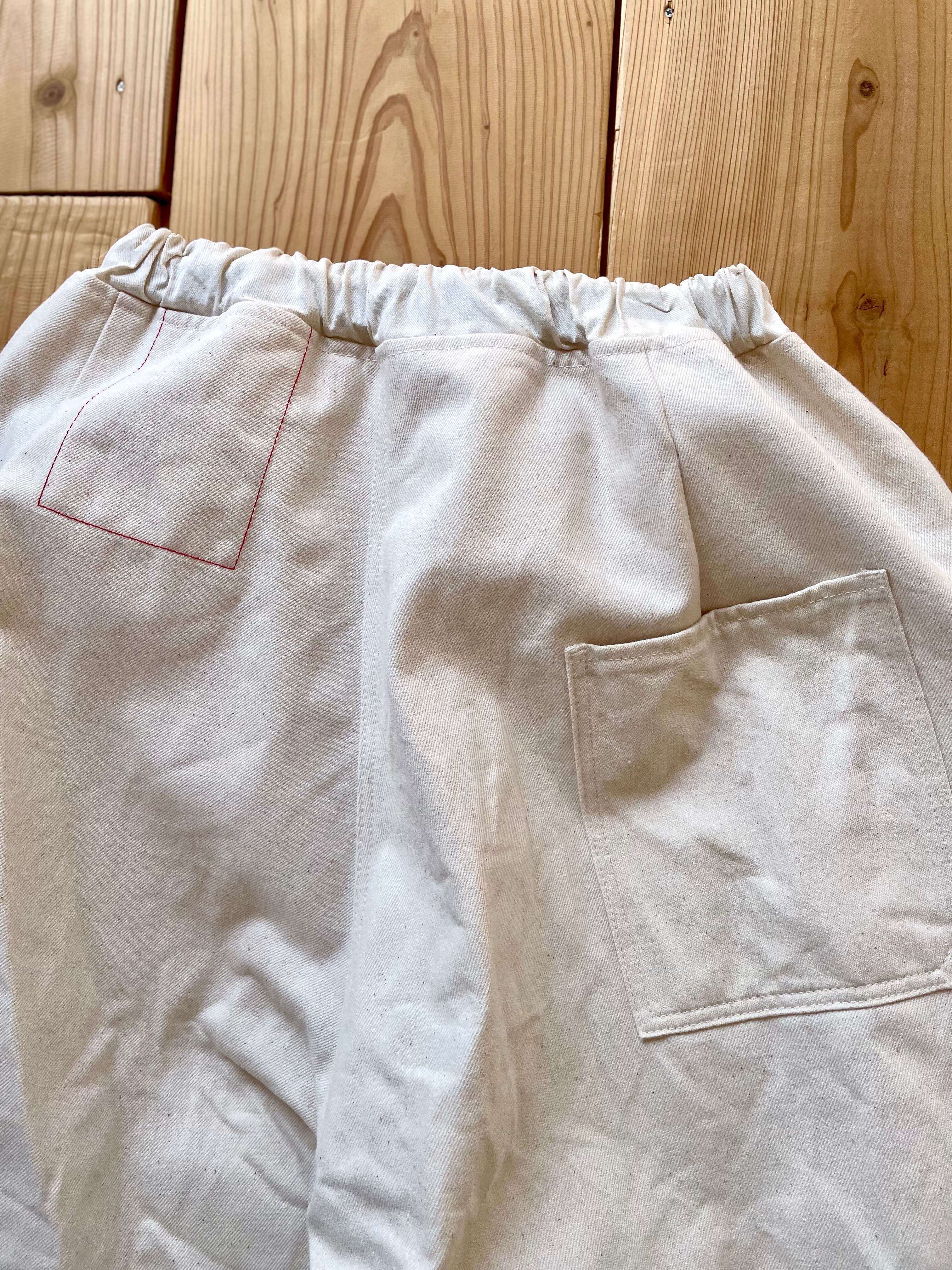 生地を染める前の生機(きばた)という、国産コットン生地の厚手を使用しています。