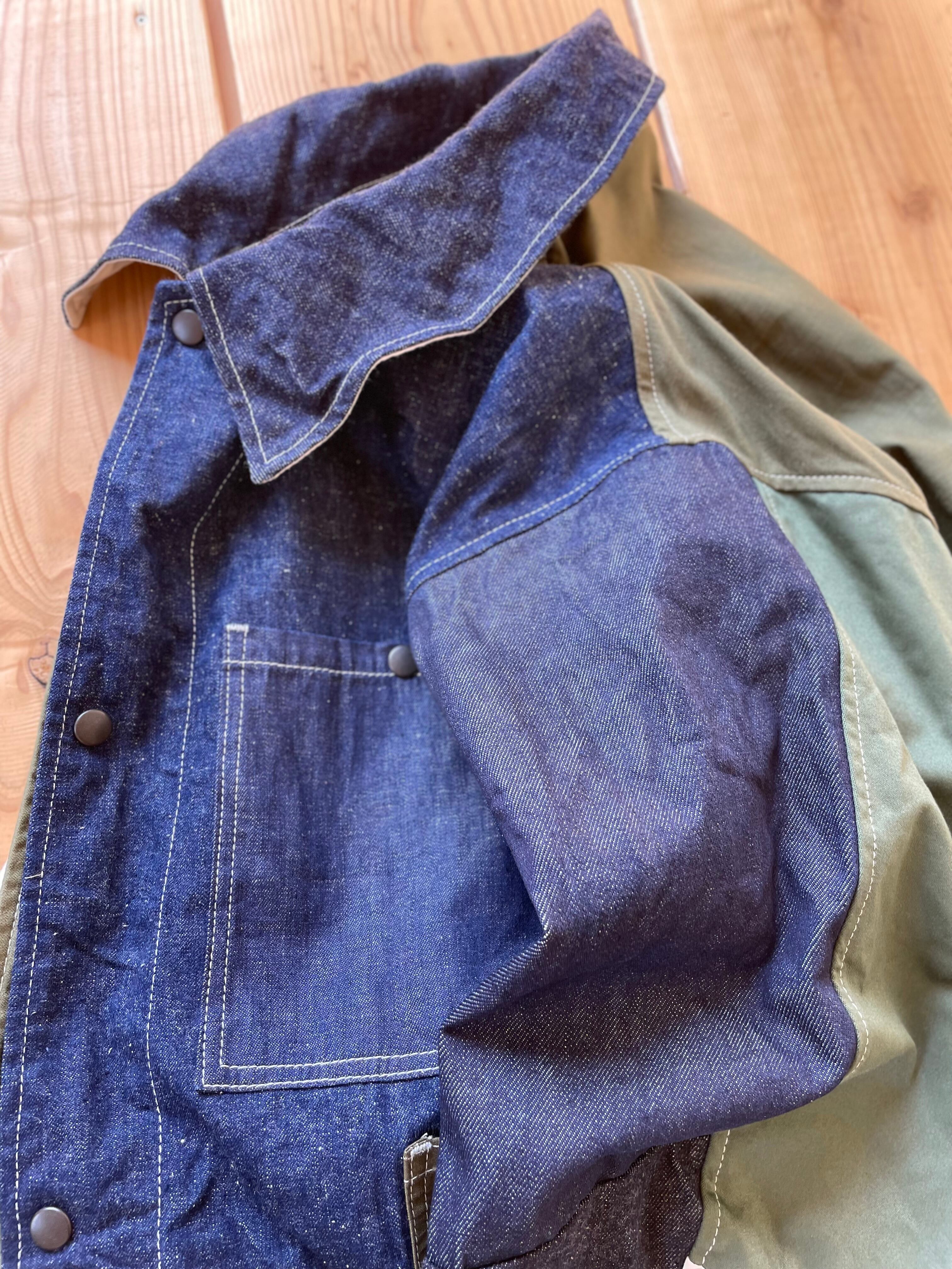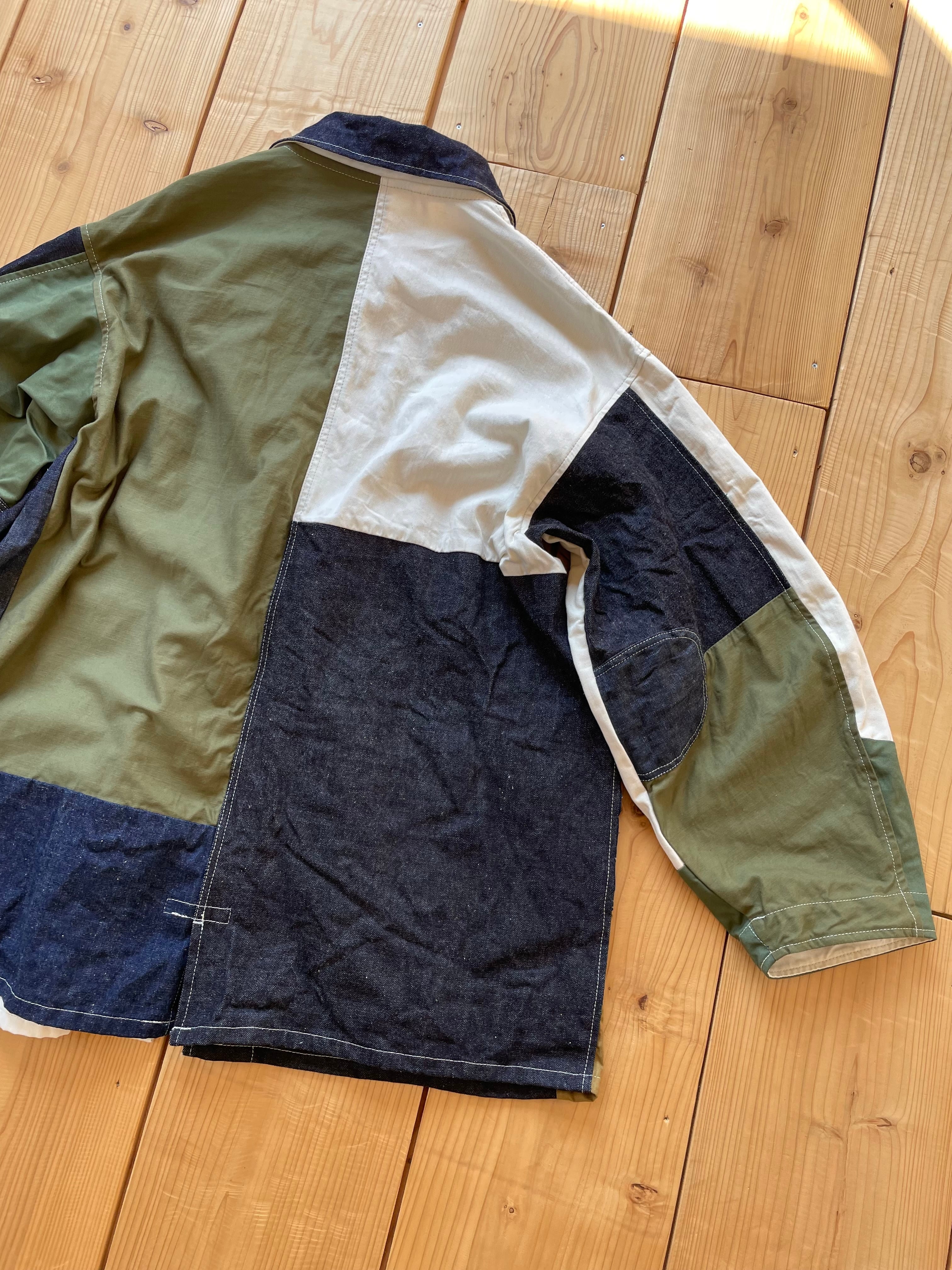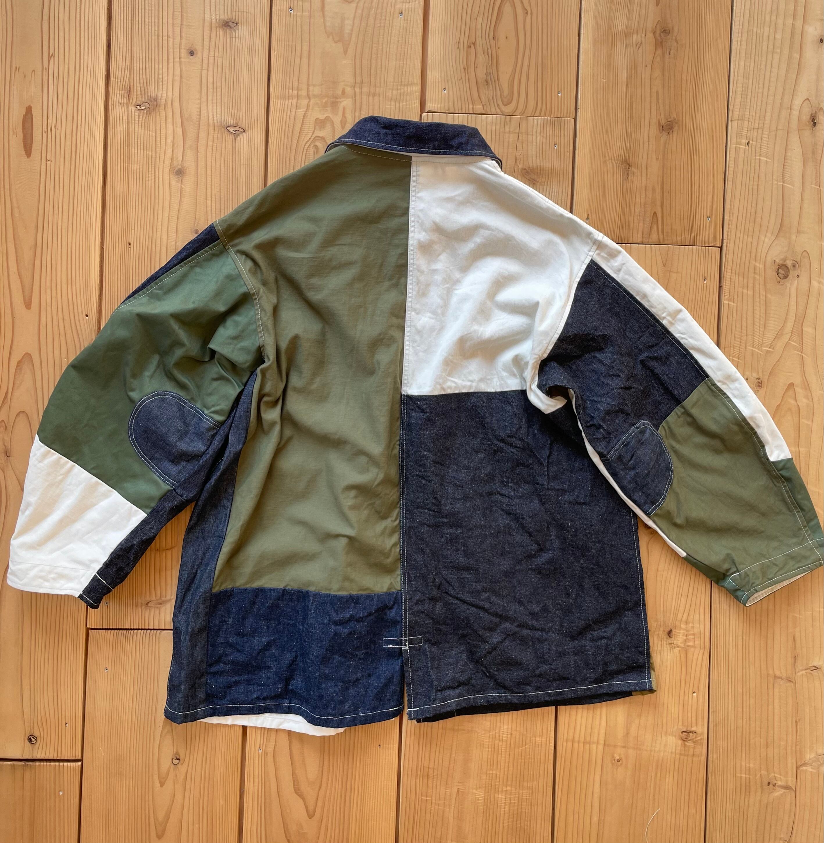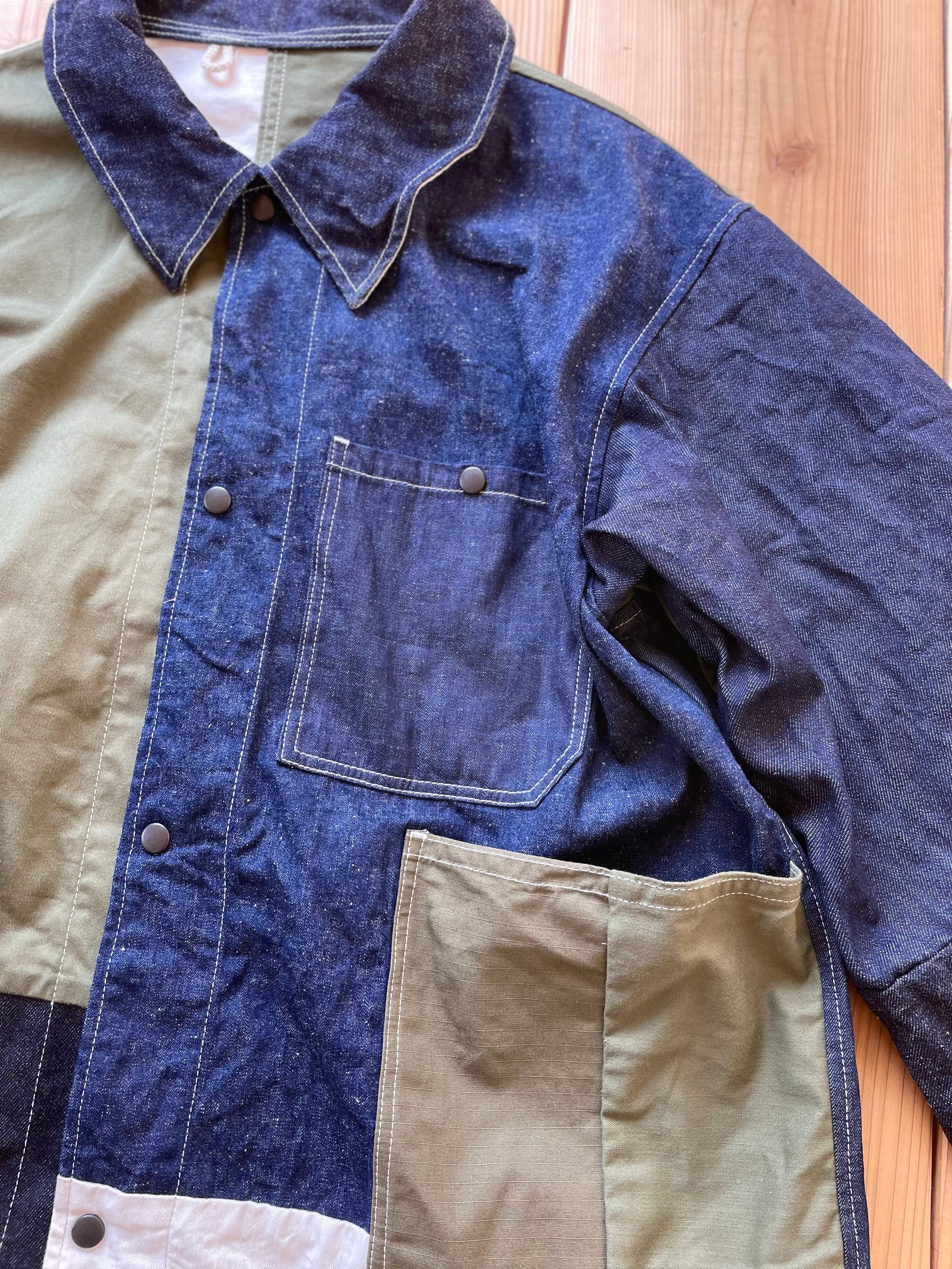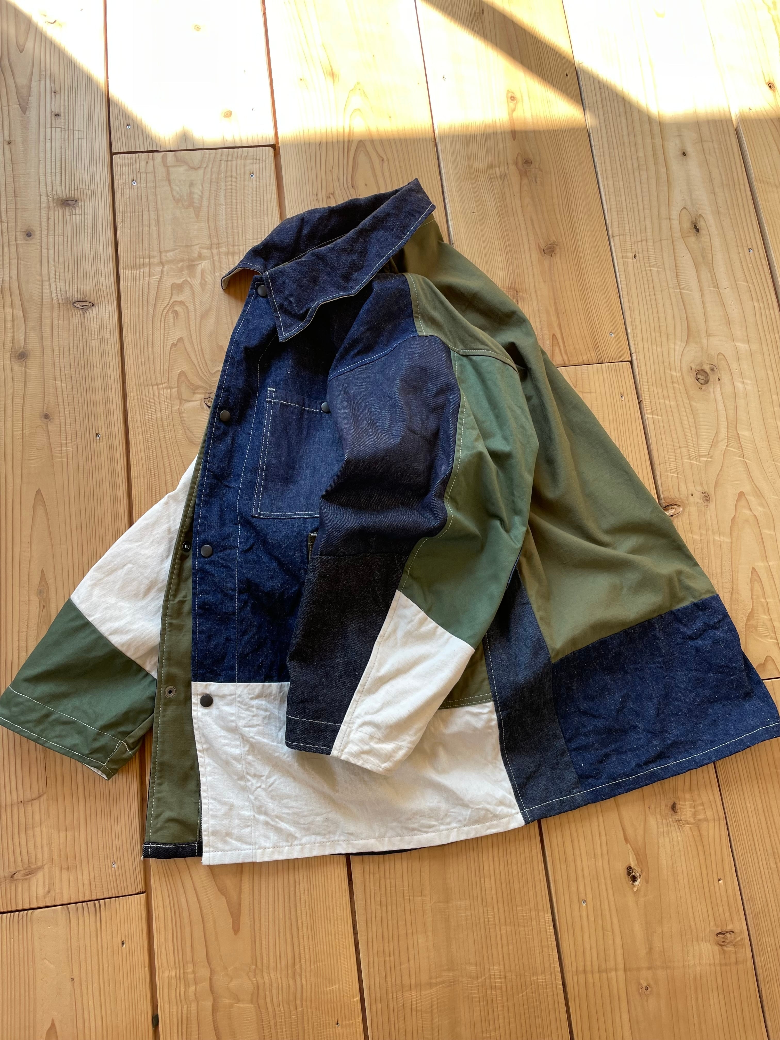デニム、カーキ、白系のコットン素材でランダムに仕上げています。
