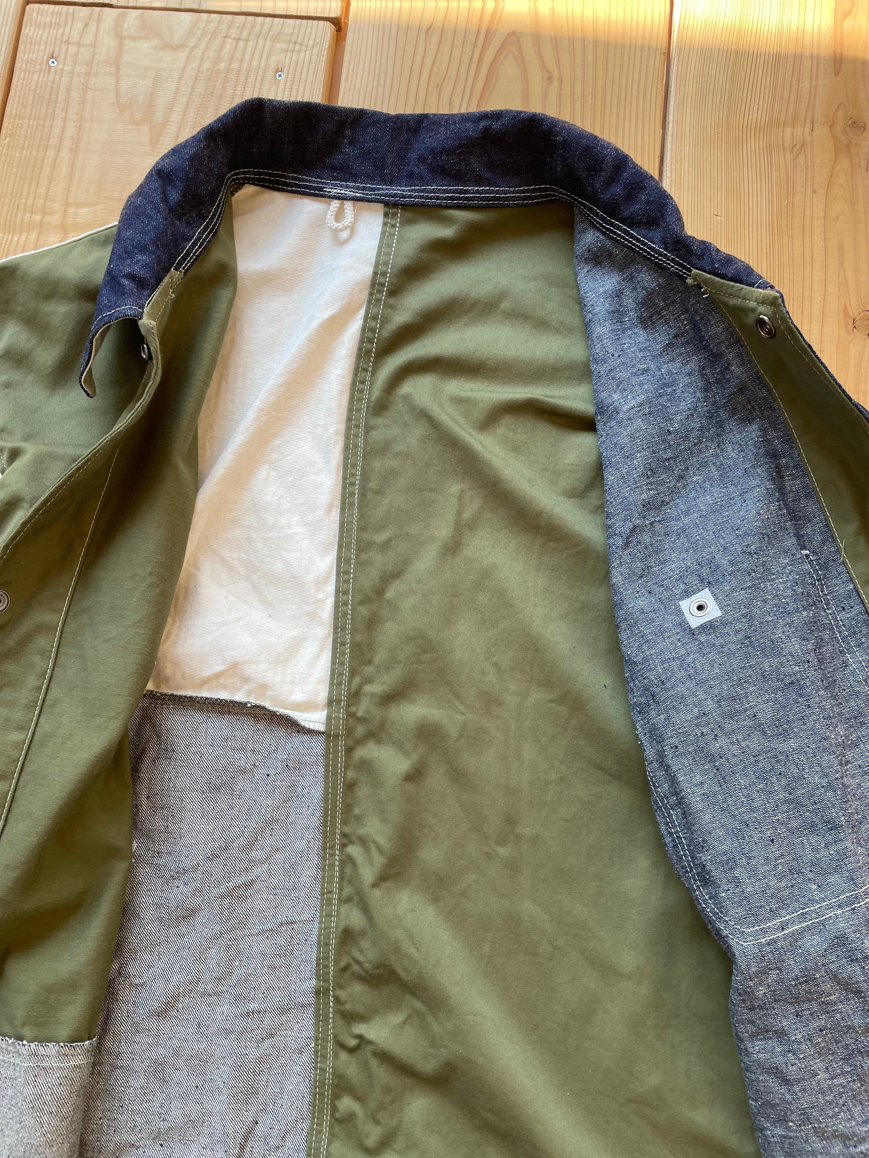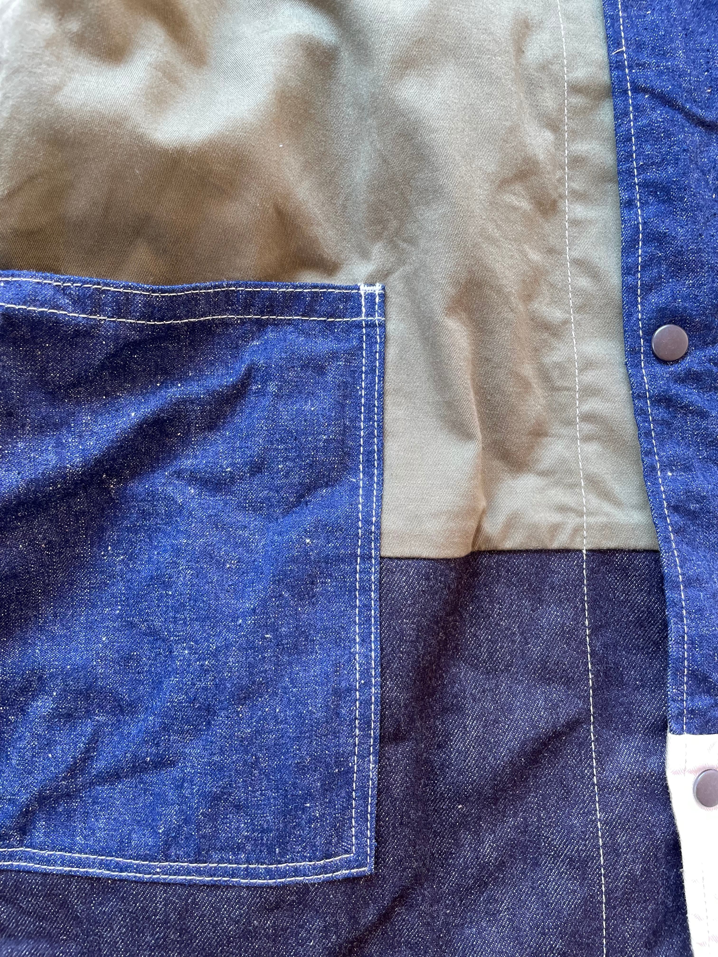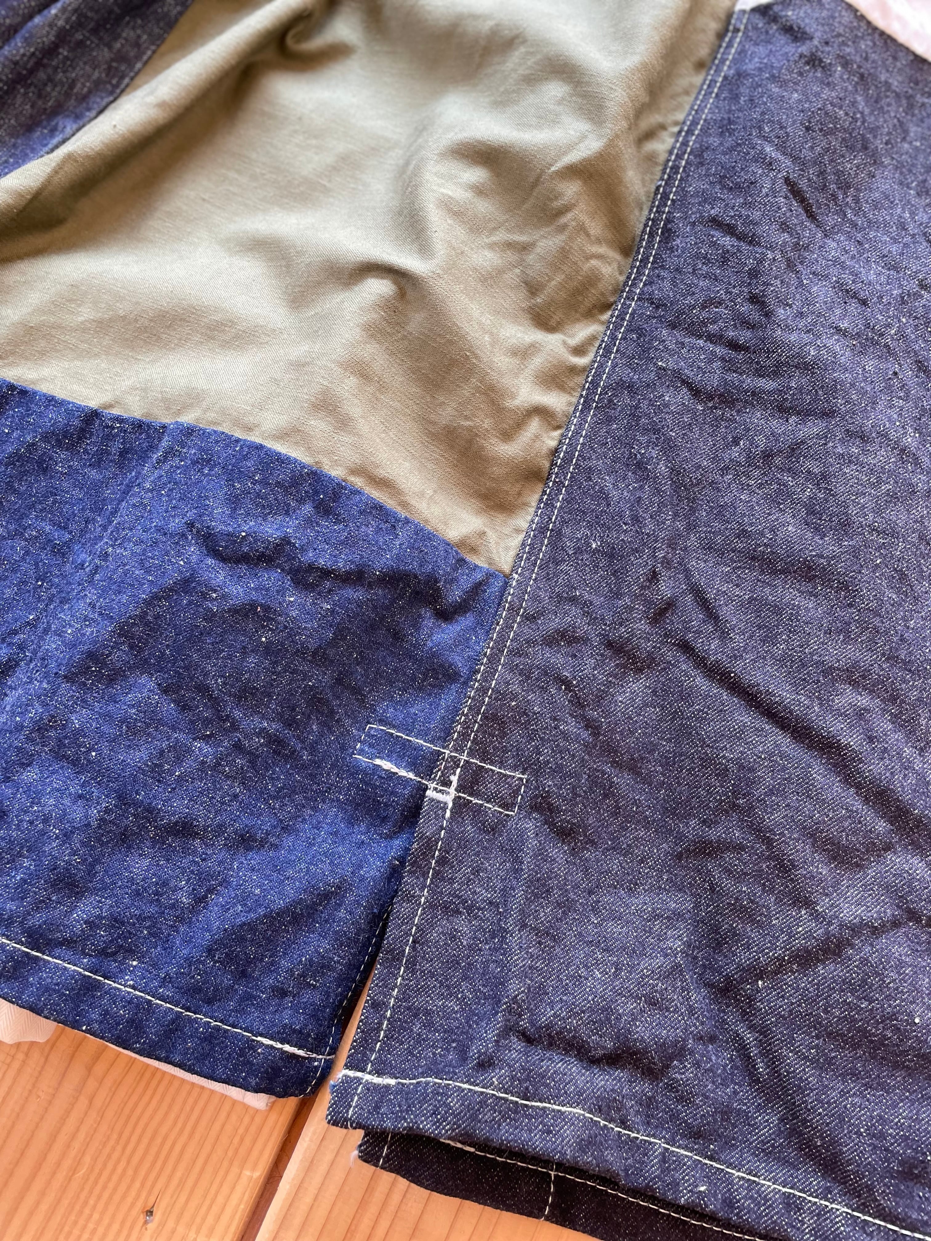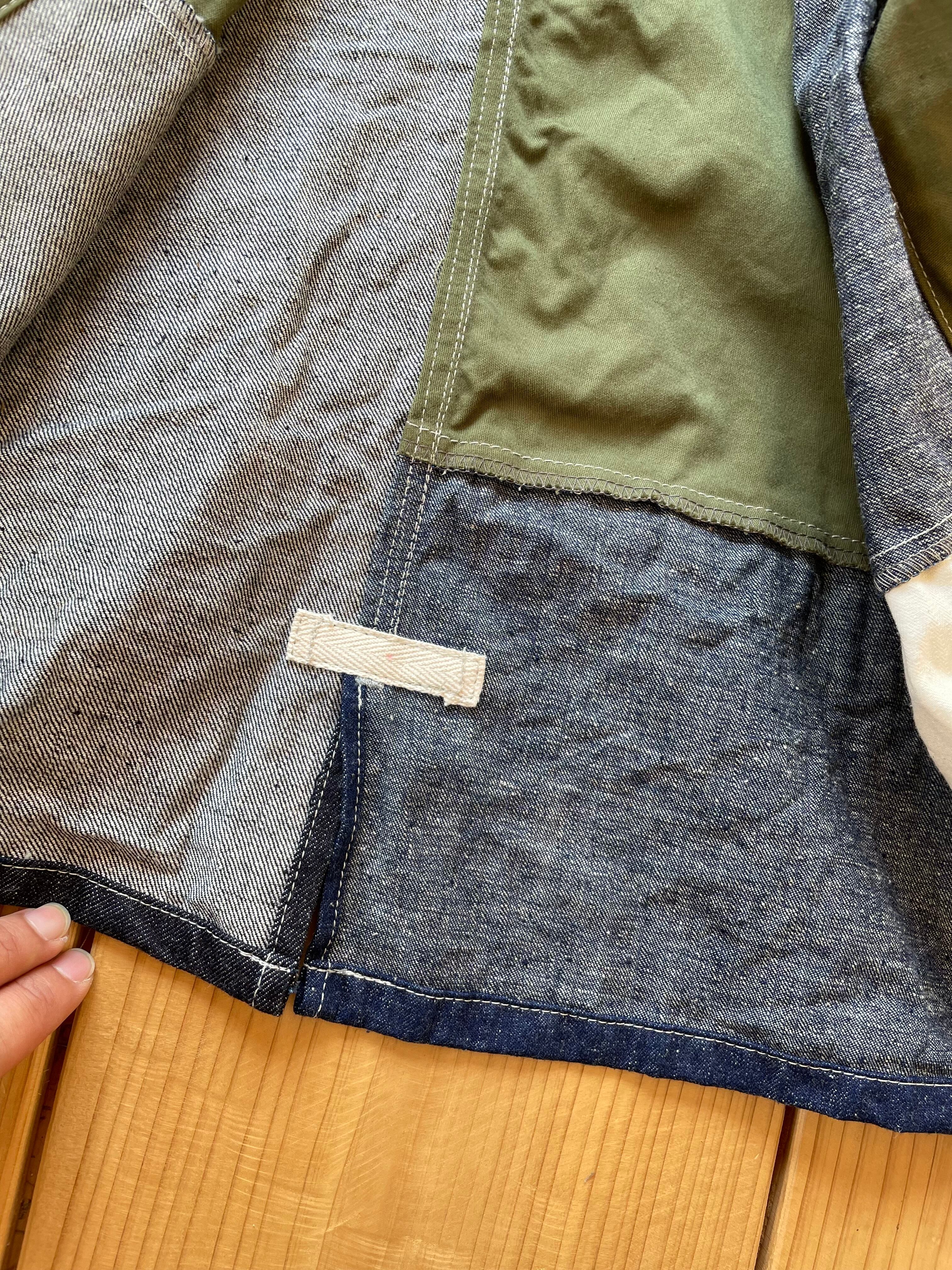 デニム、カーキ、白系のコットン素材でランダムに仕上げています。