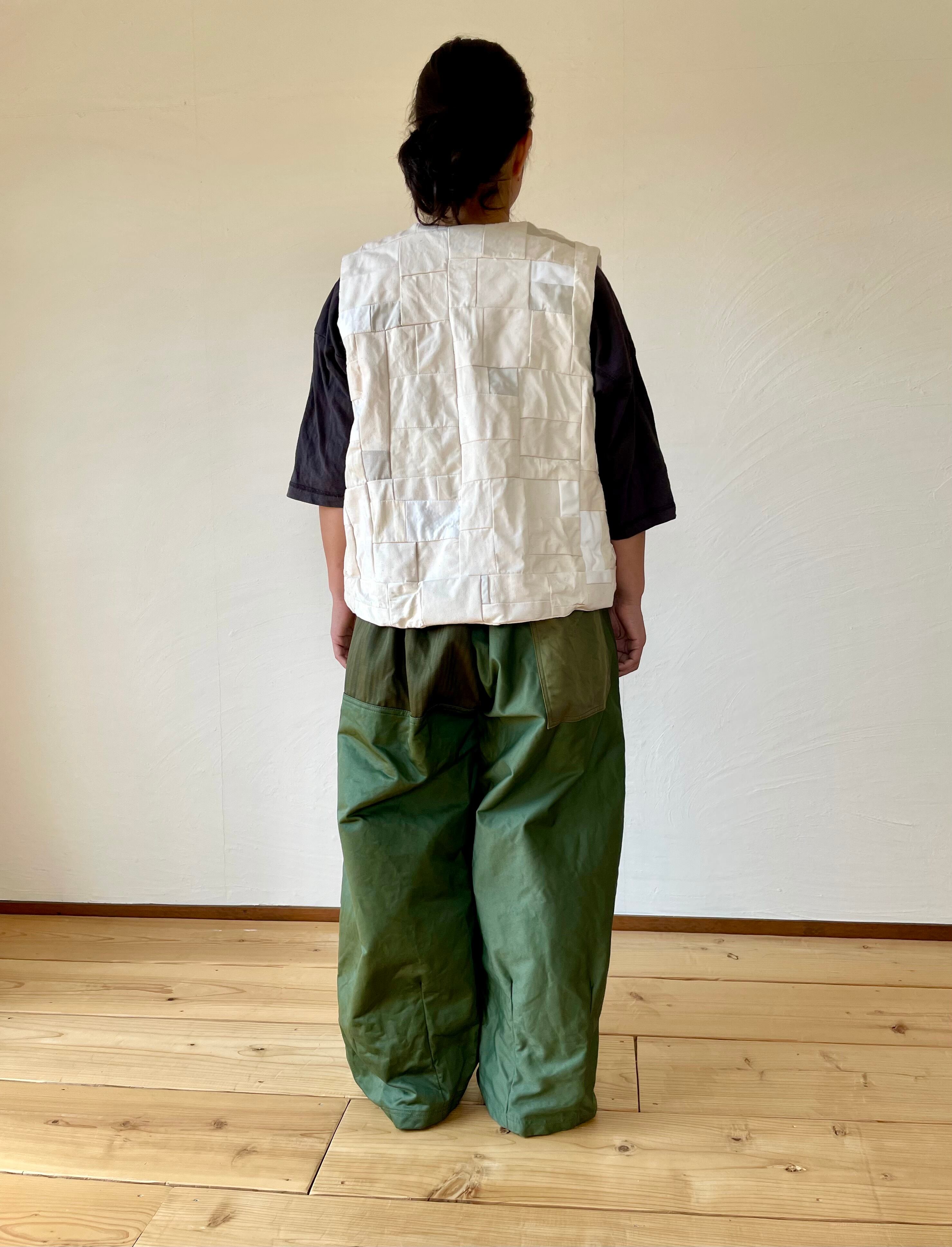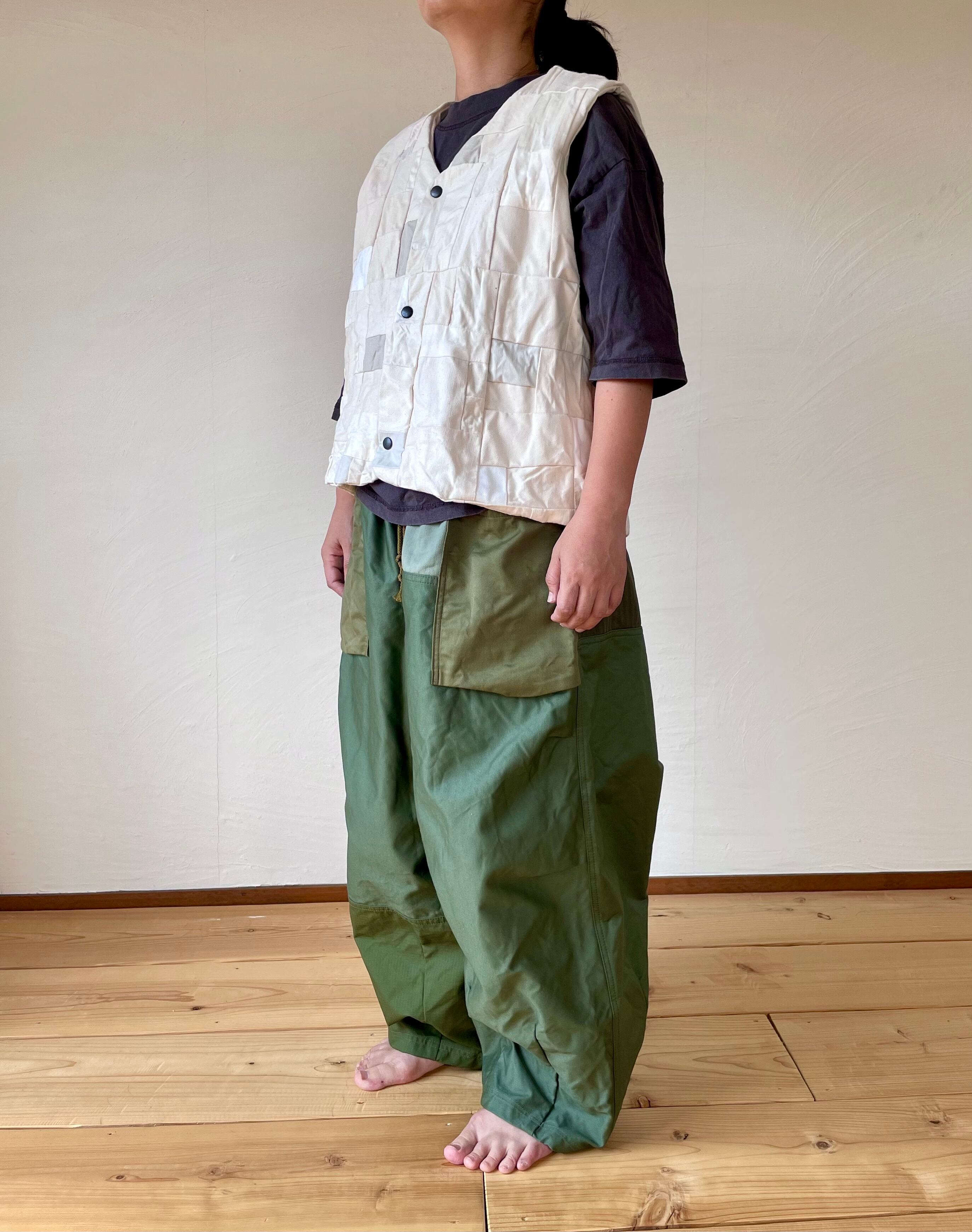 カーキ系をメインに国産コットン生地をランダムに使用しています。