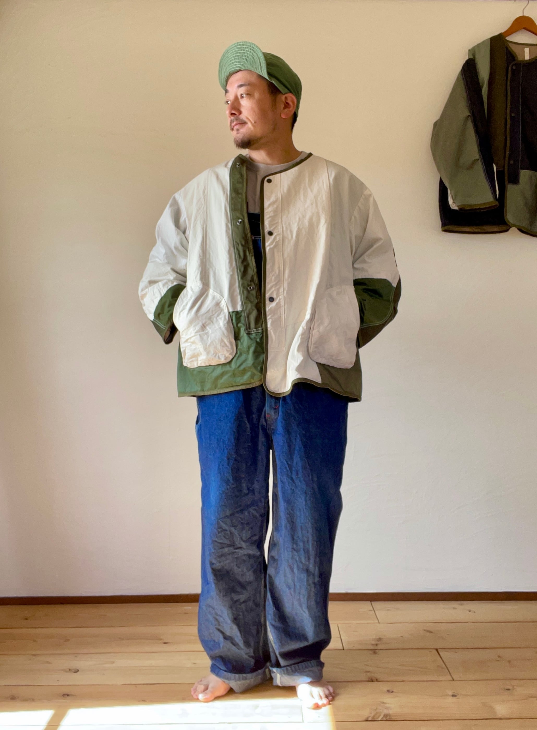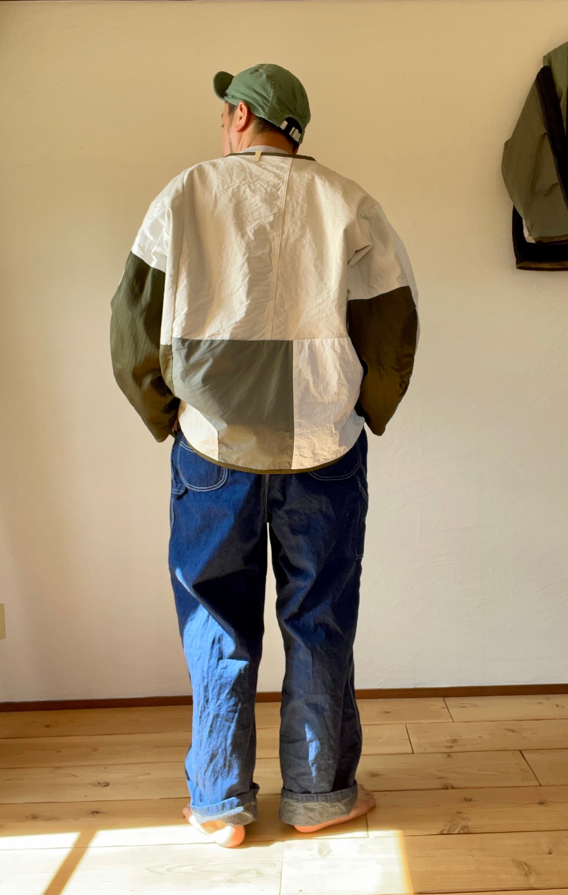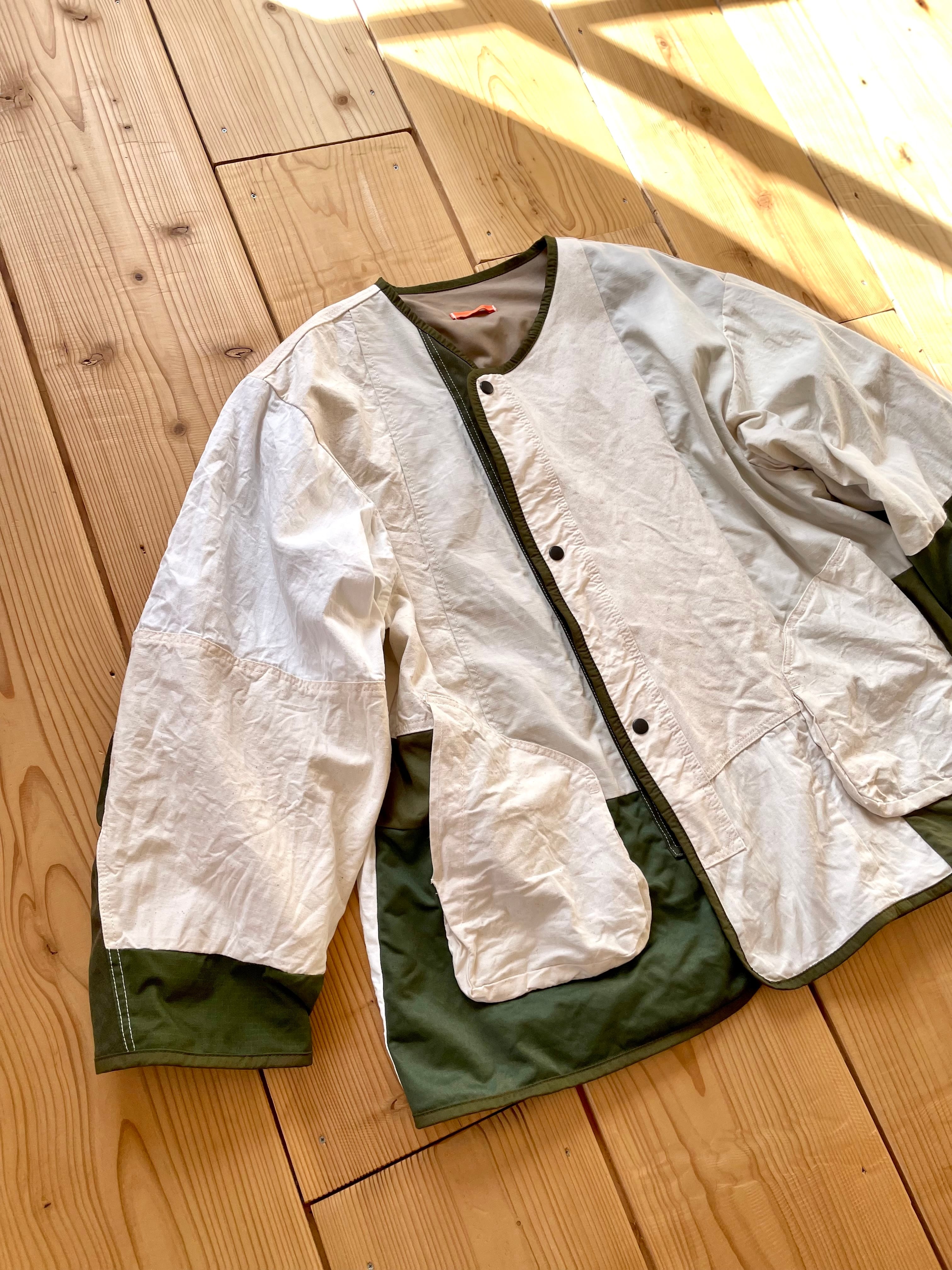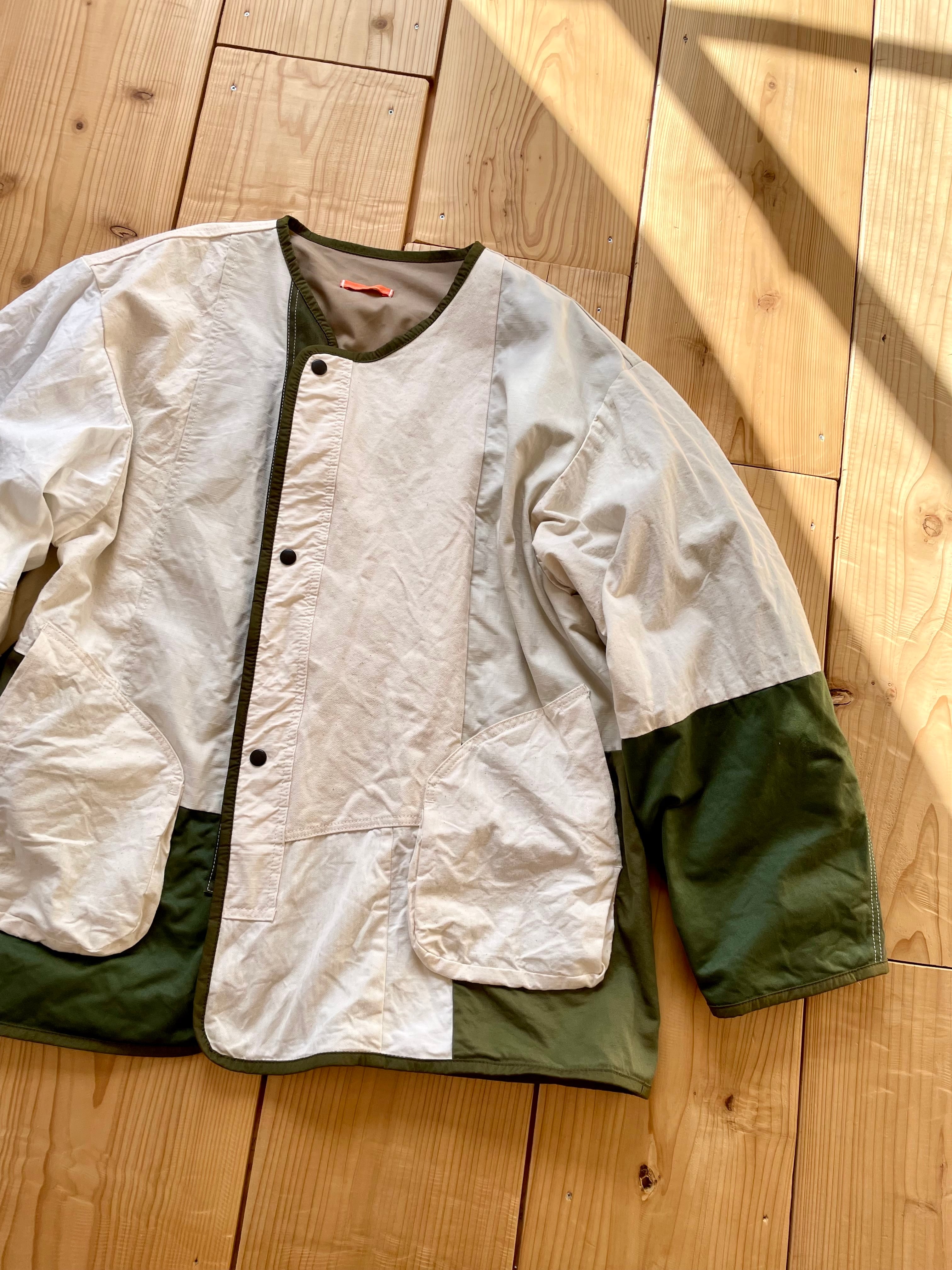 白、生成り系とカーキ系コットン生地でランダムに仕上げています。