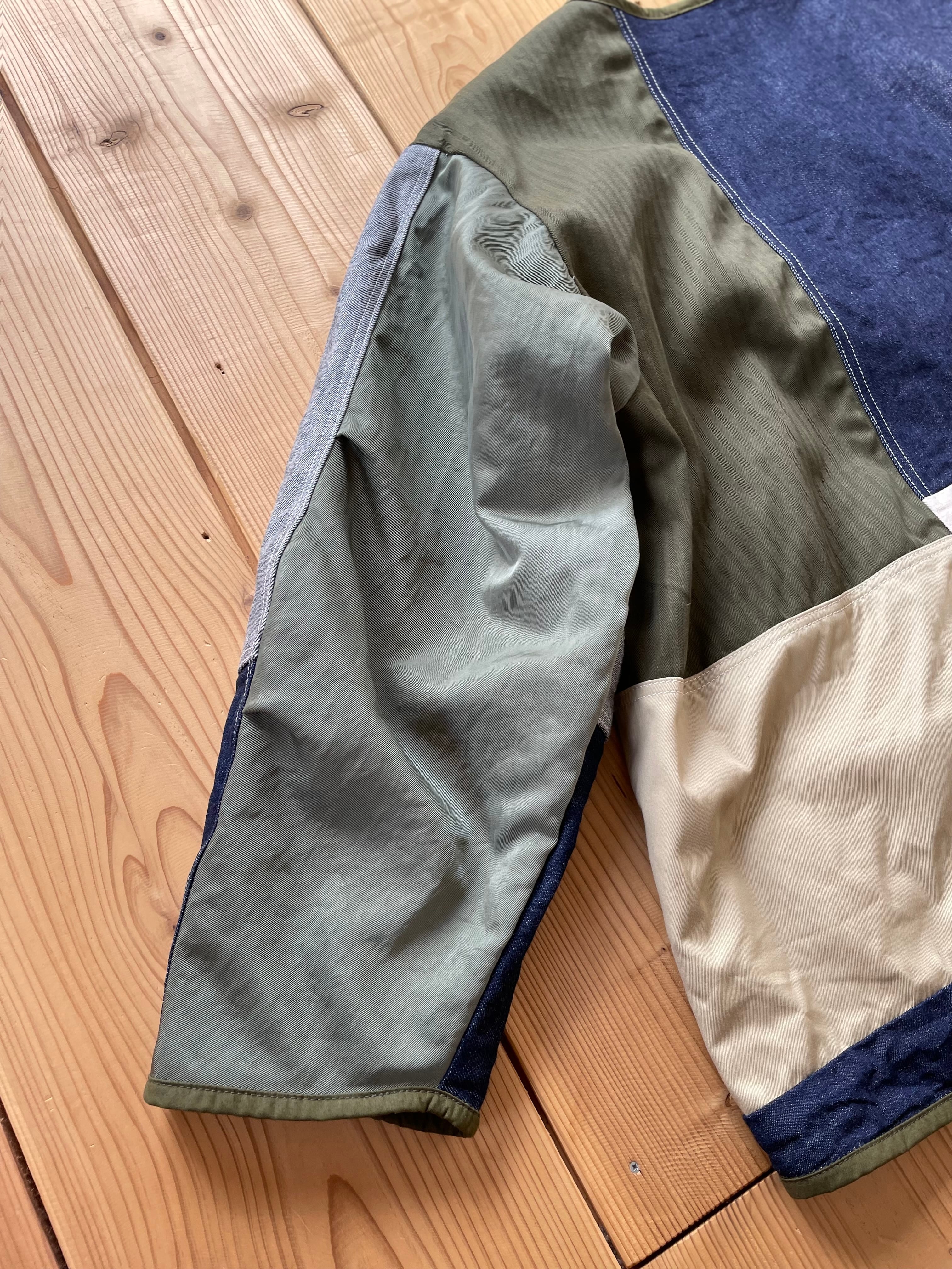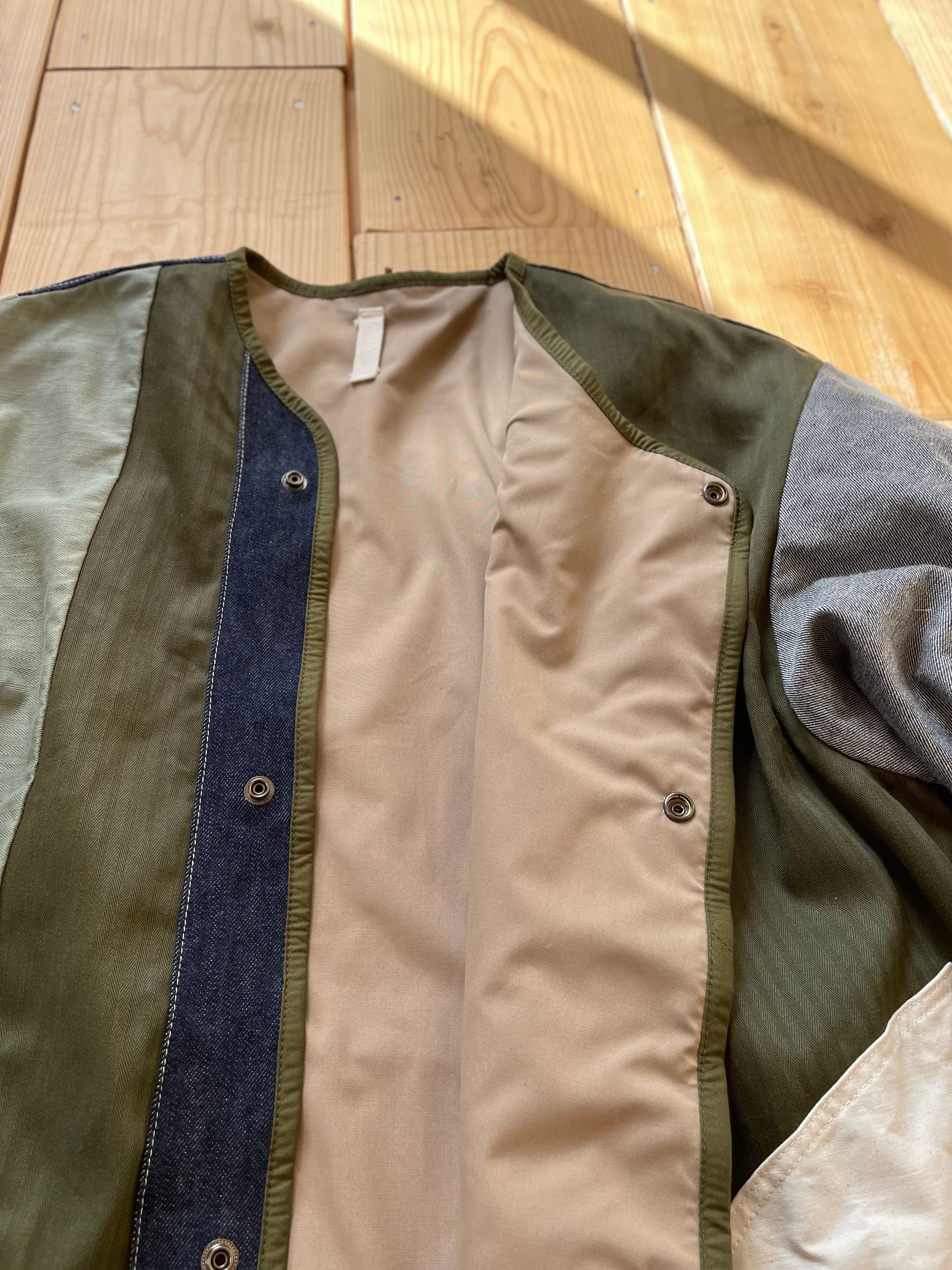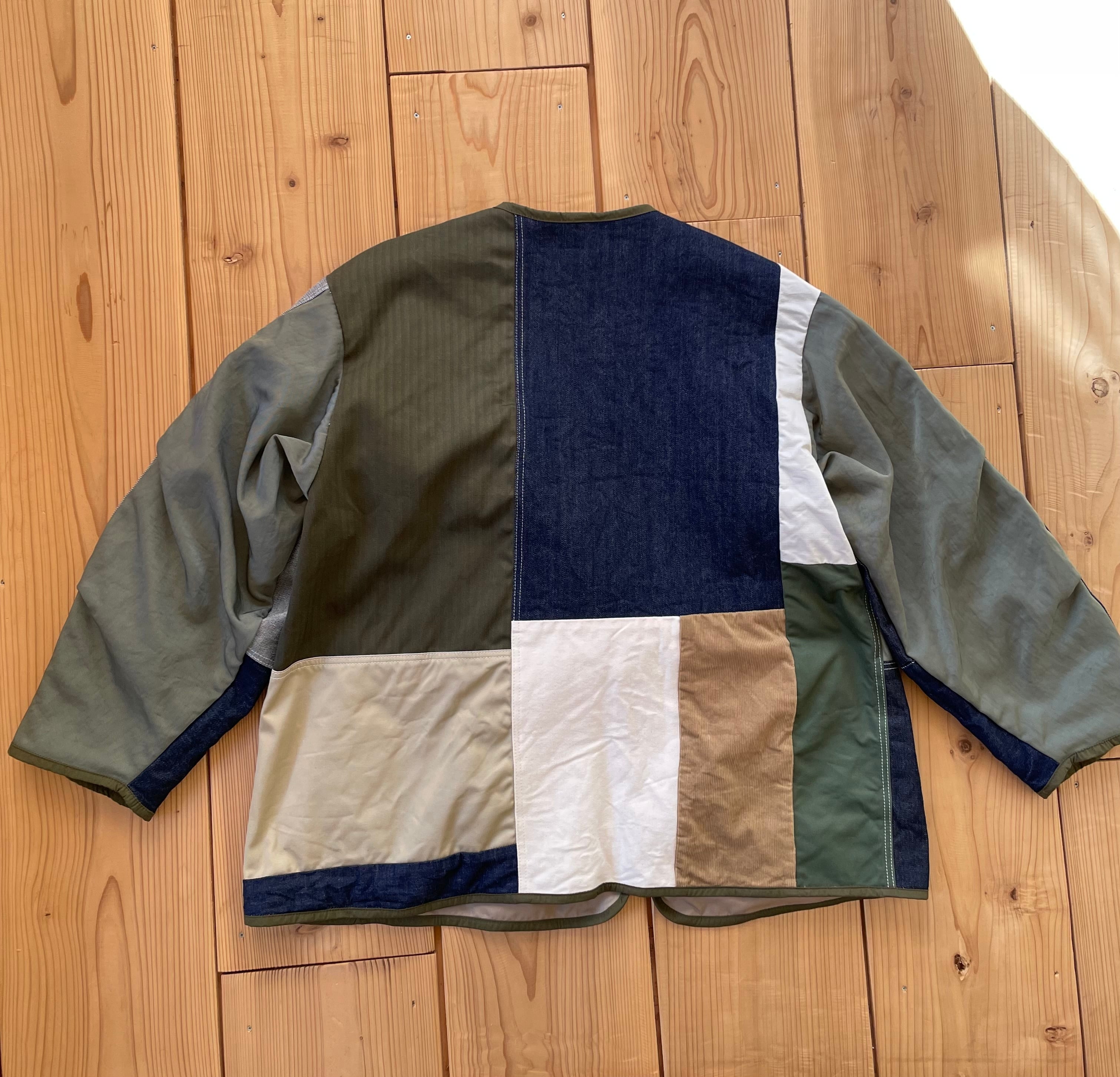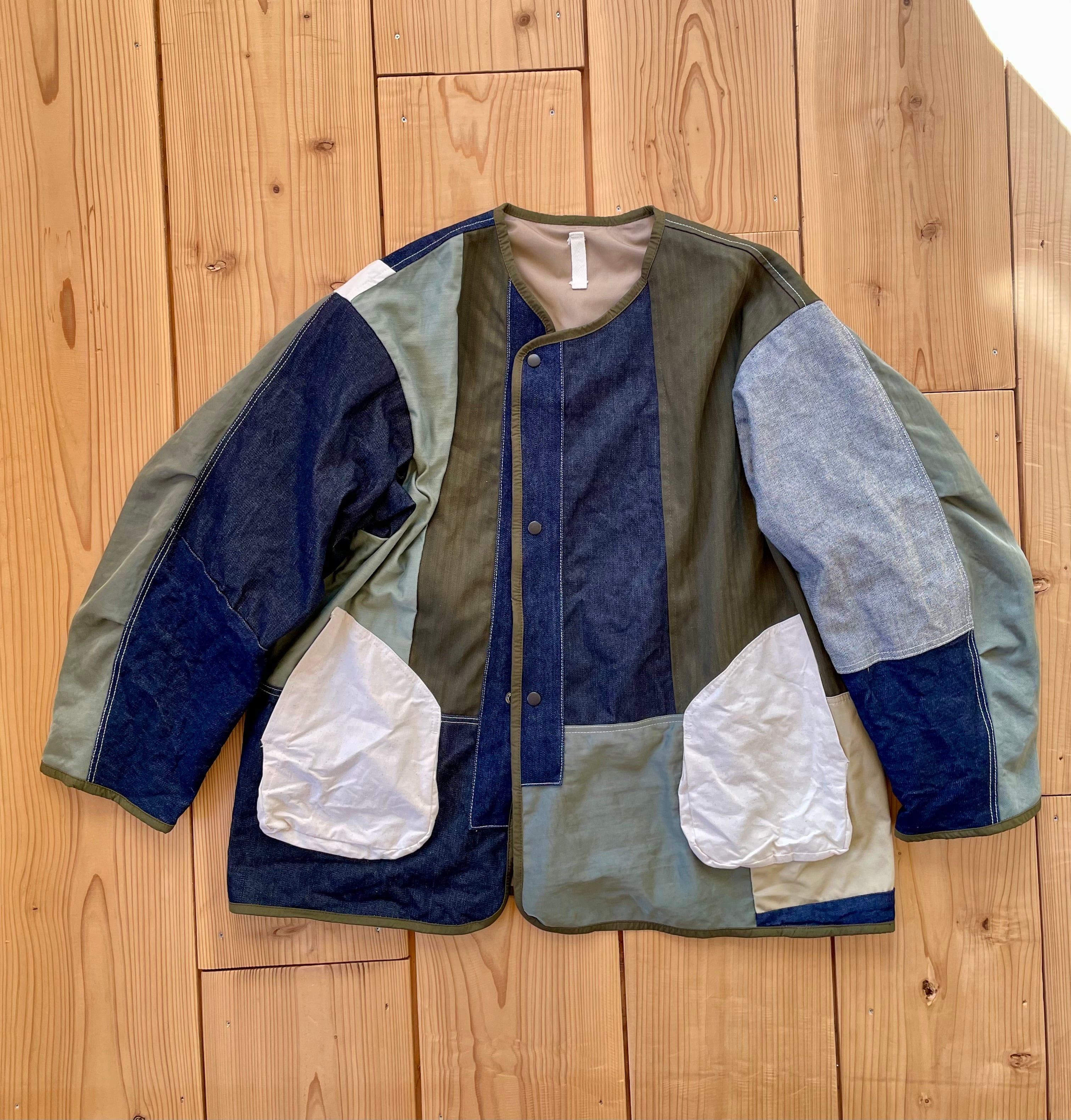 デニムやカーキ、生成りのコットン生地でランダムに仕上げています。