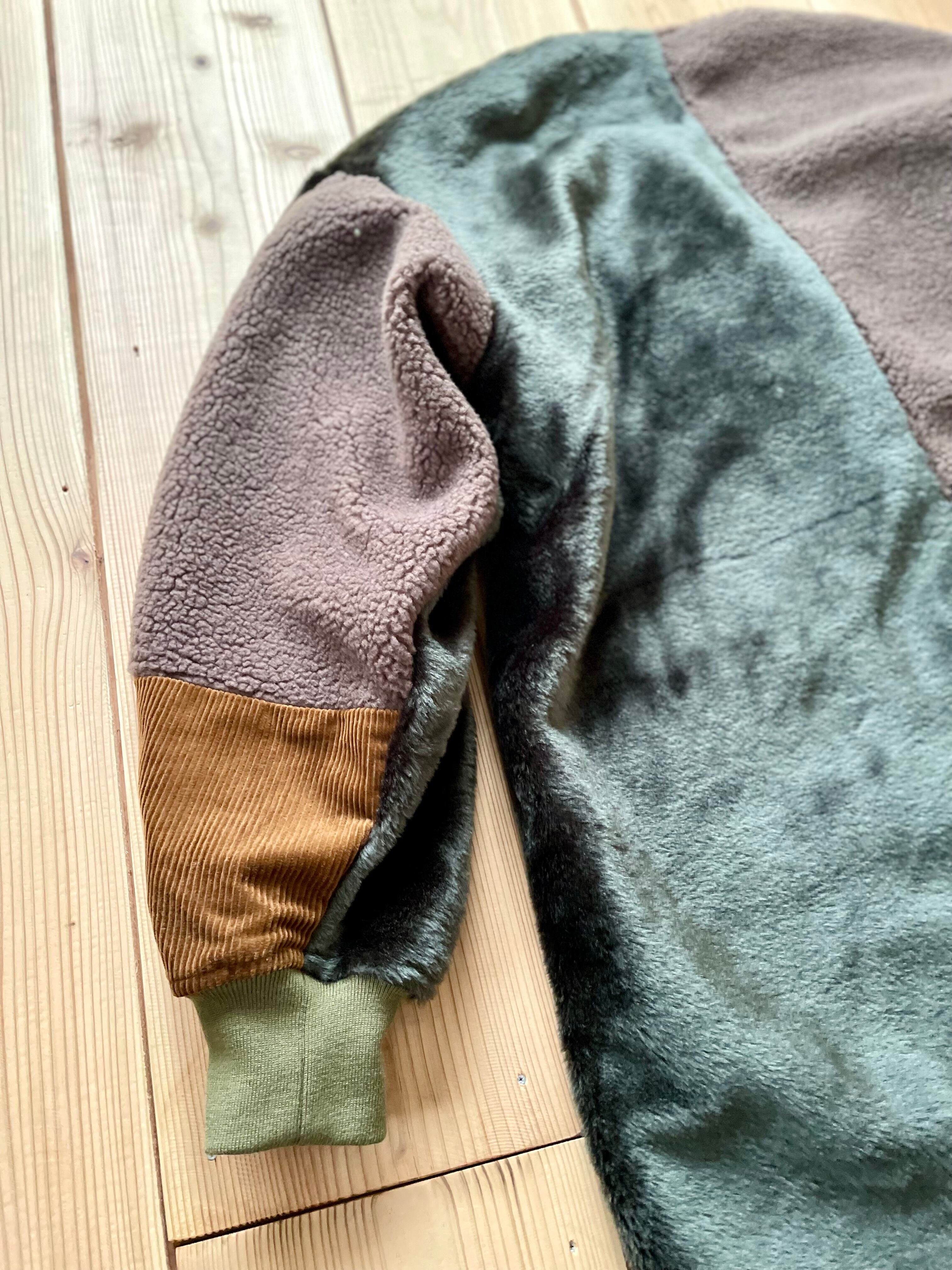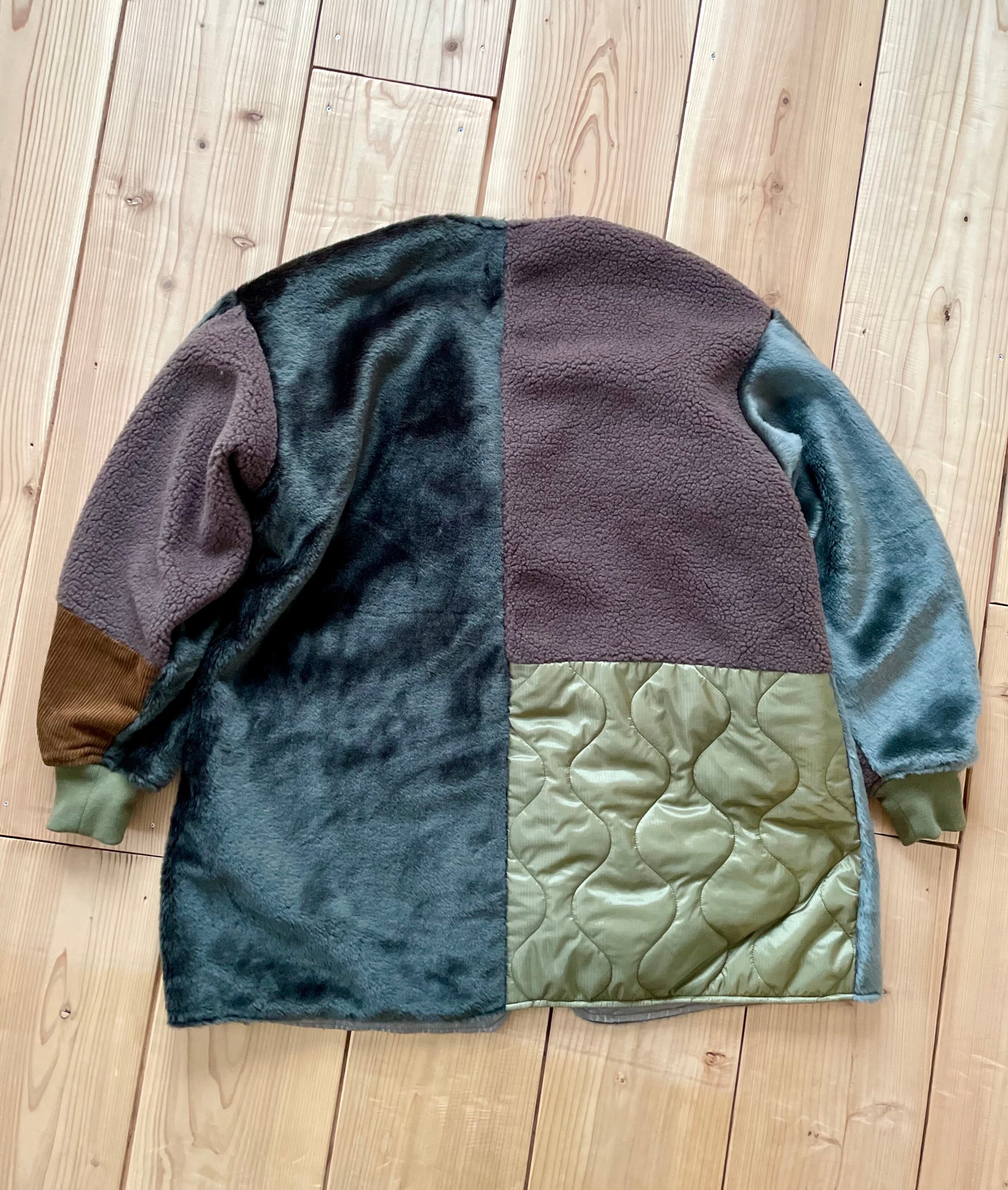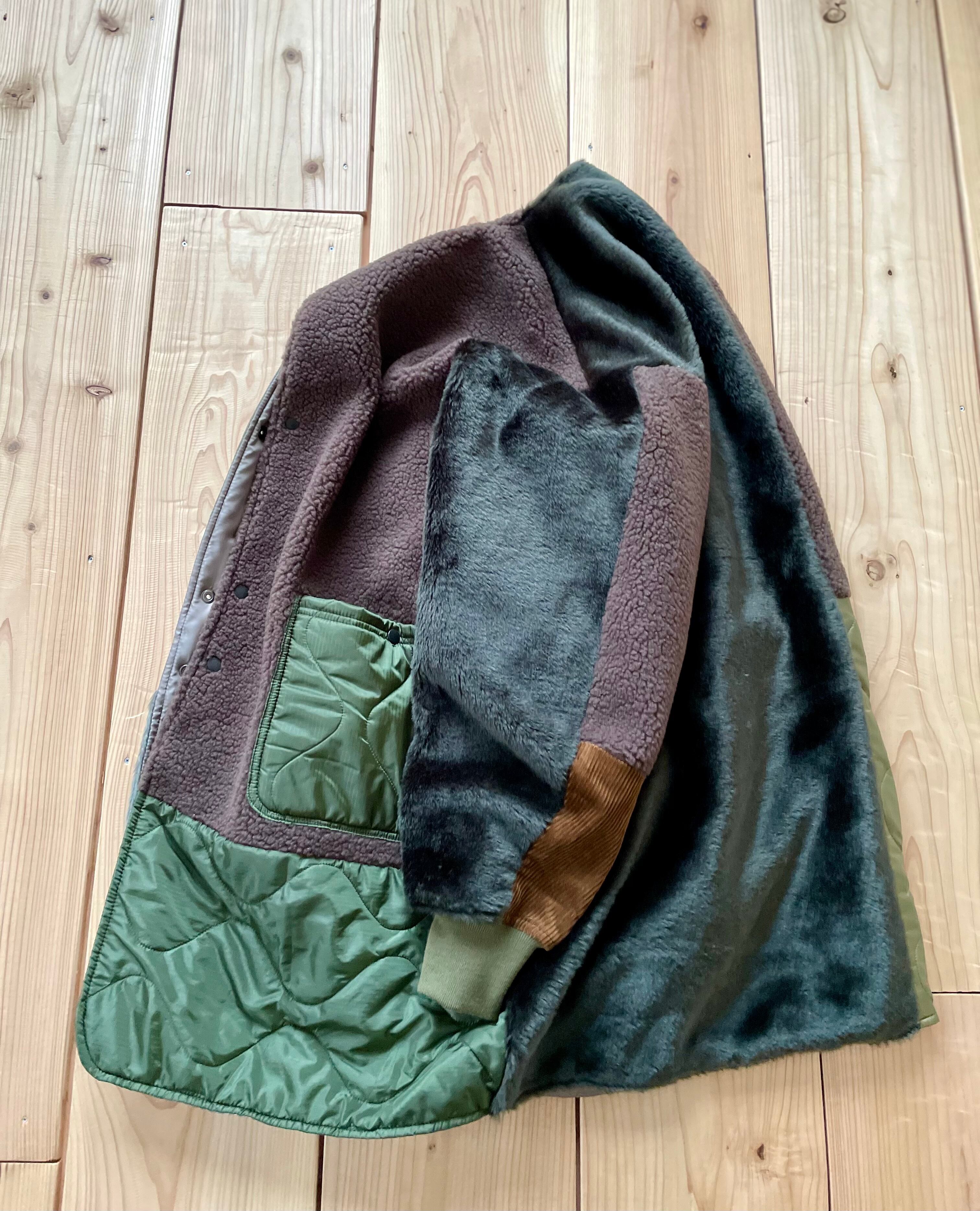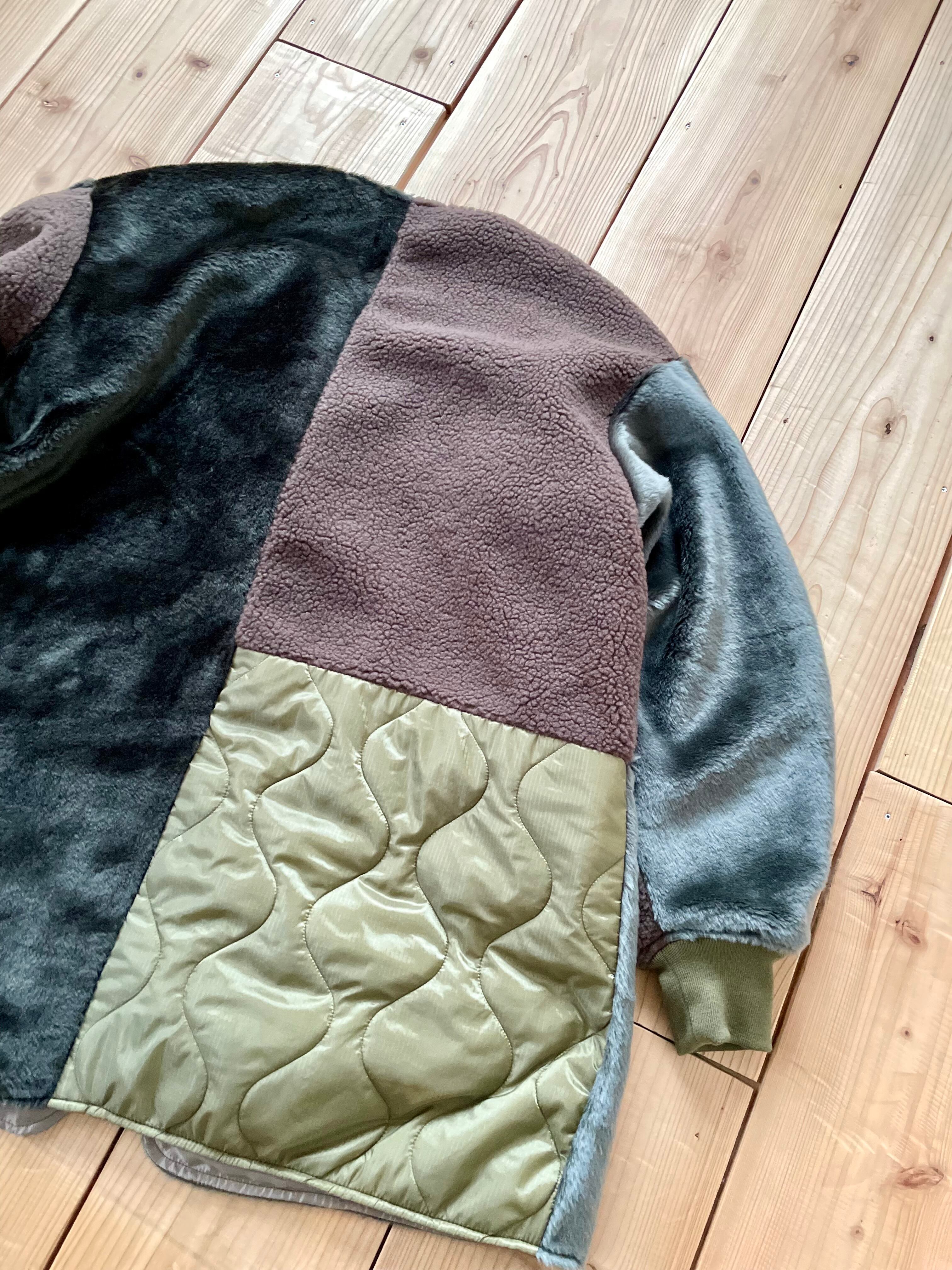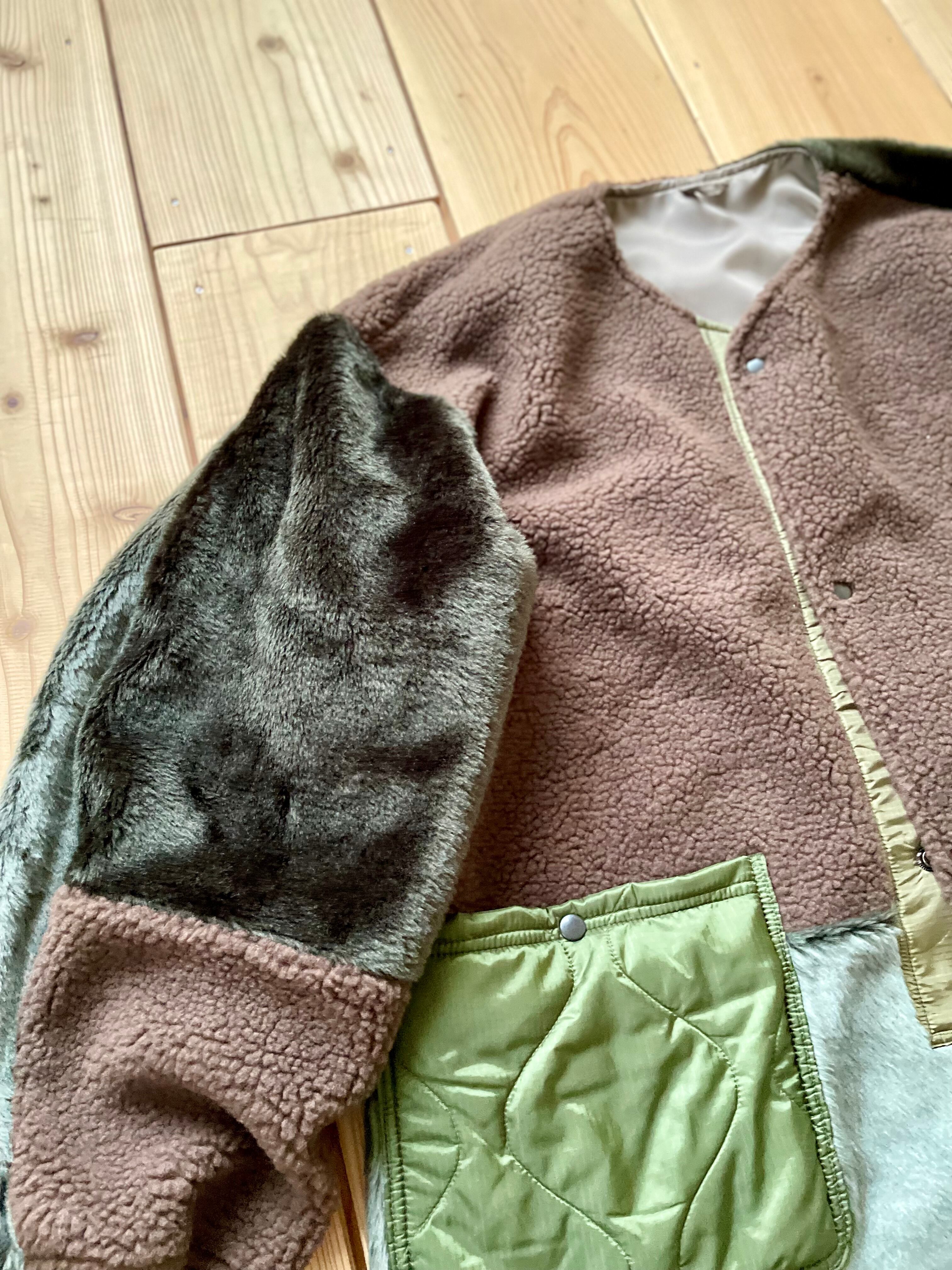 フリース、キルティングなどをランダムに使用した贅沢な1着です!