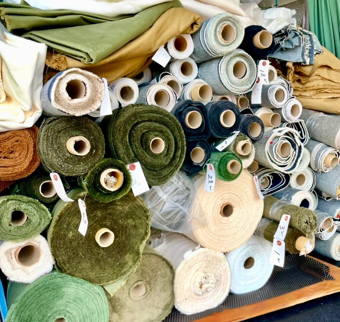 生地を染める前の生機(きばた)という、国産コットン生地を厚みや織り方の違う反物からランダムに使い仕上げました。