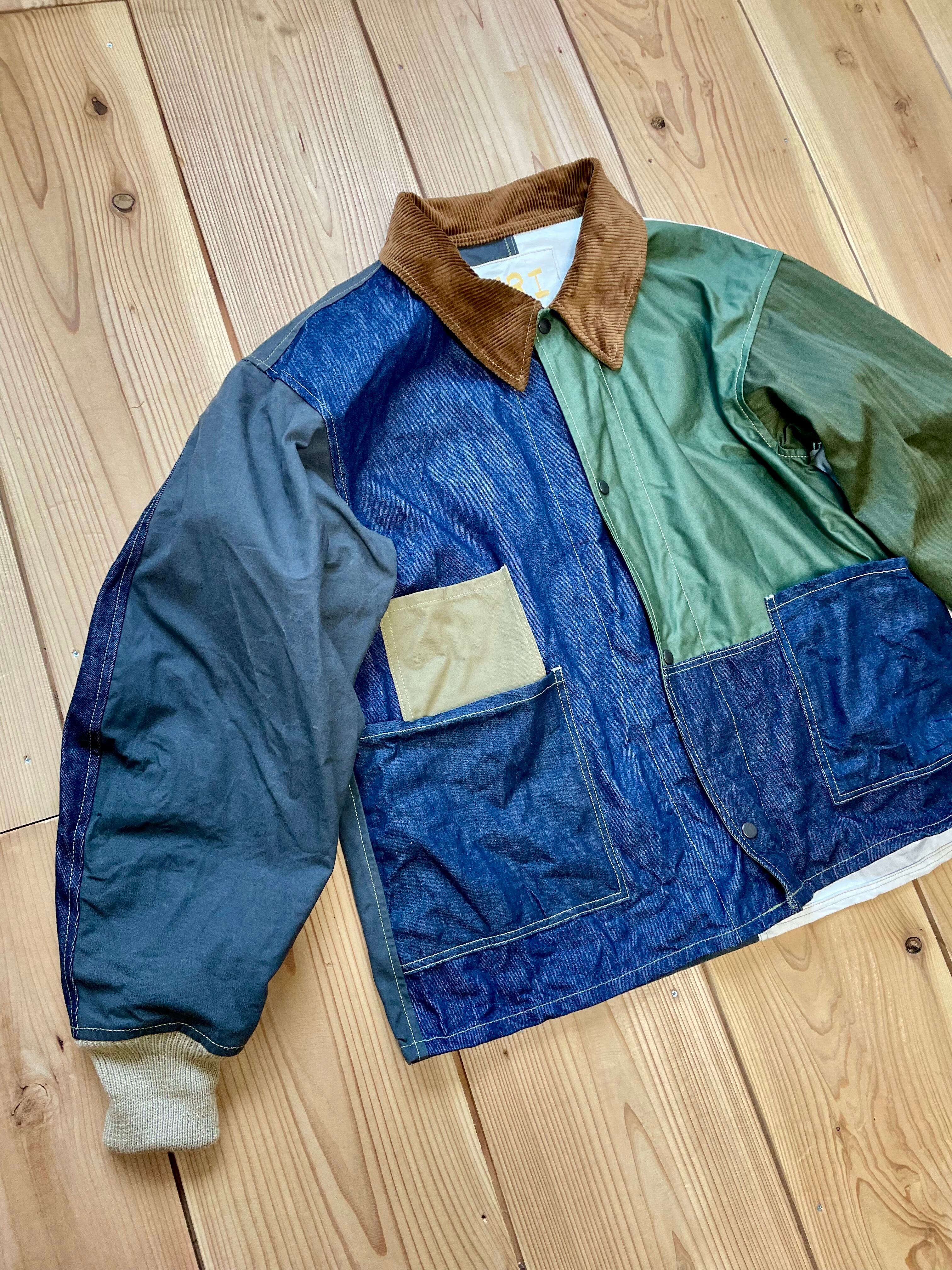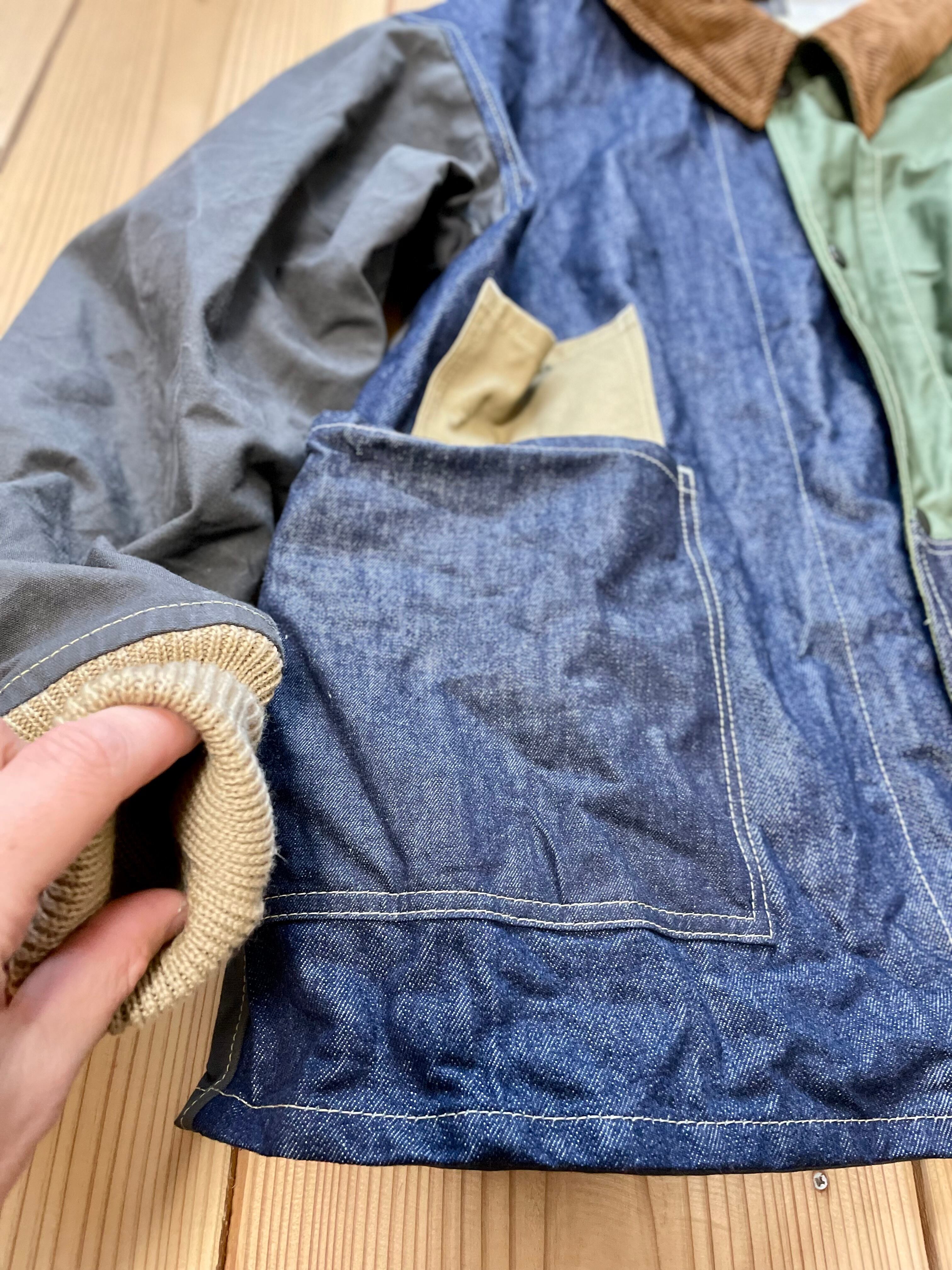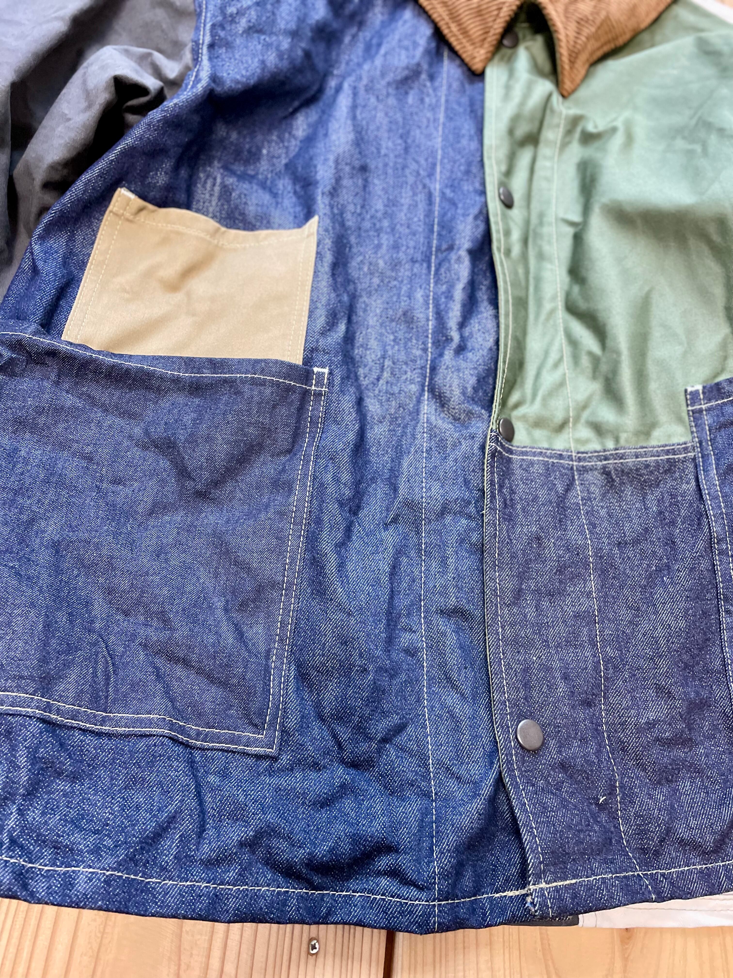 コットン生地で、デニム、ヘリンボーン、ヒッコリー、ツイル生地などをランダムなカラーで組み合わせてみました。