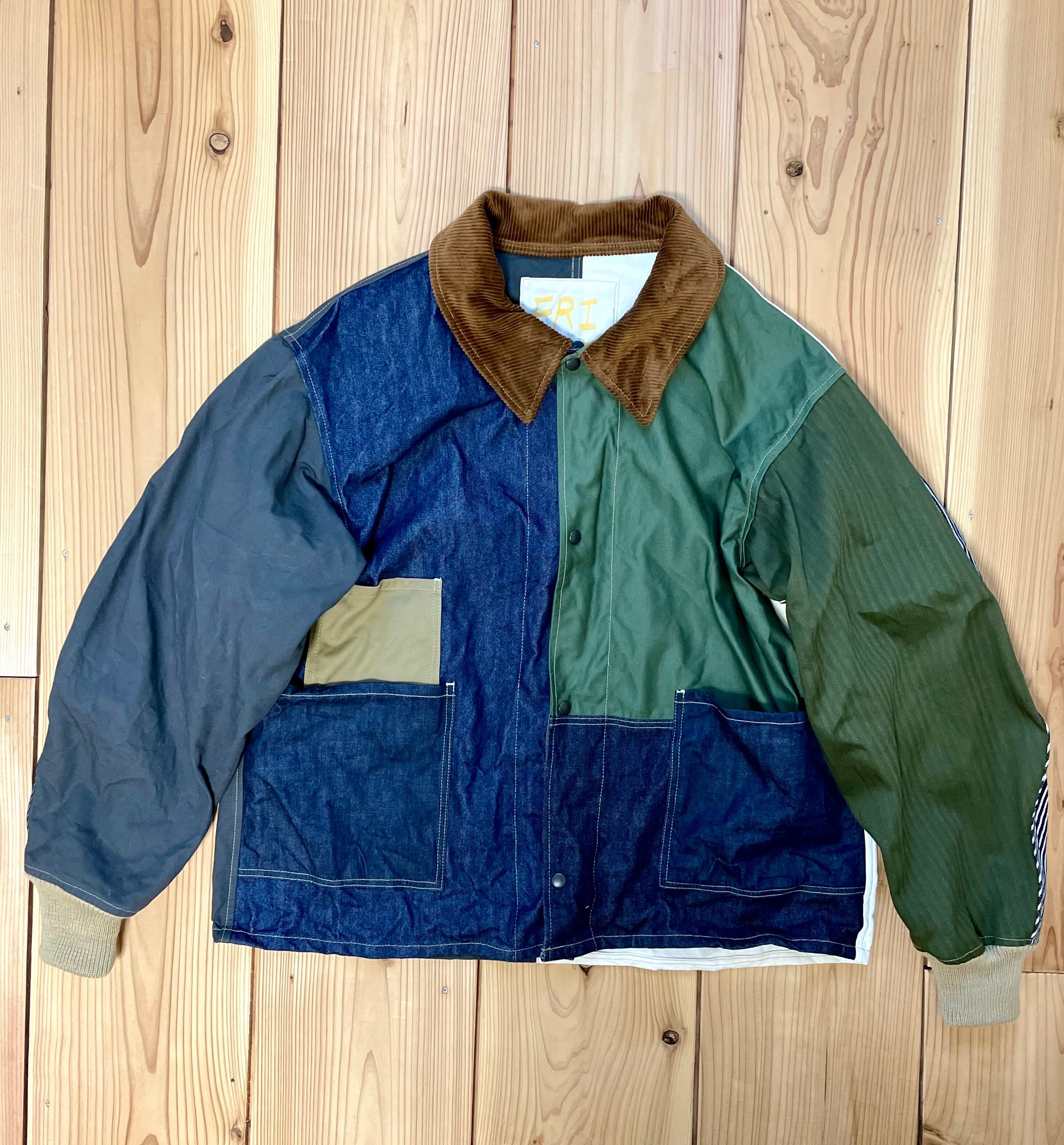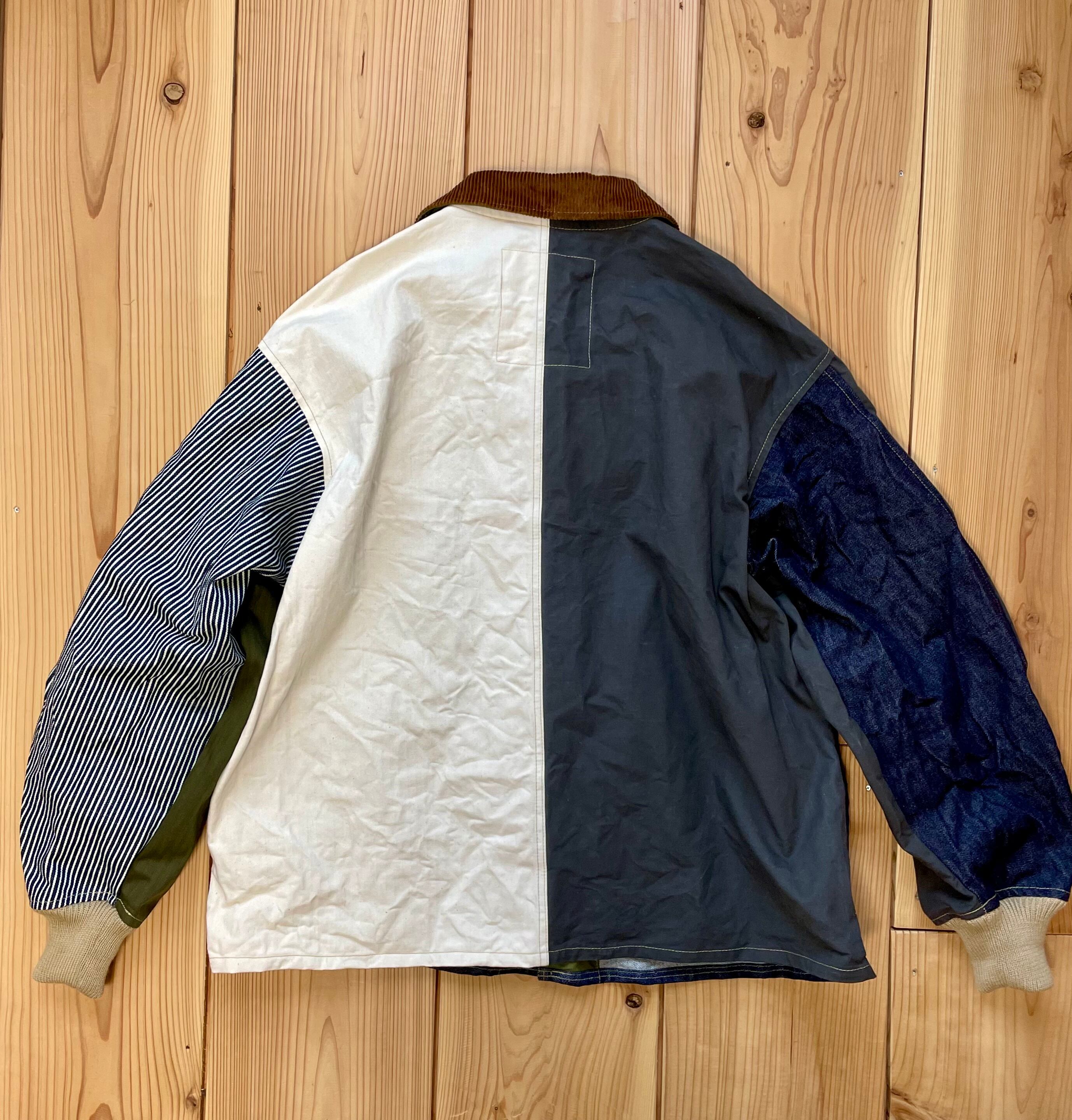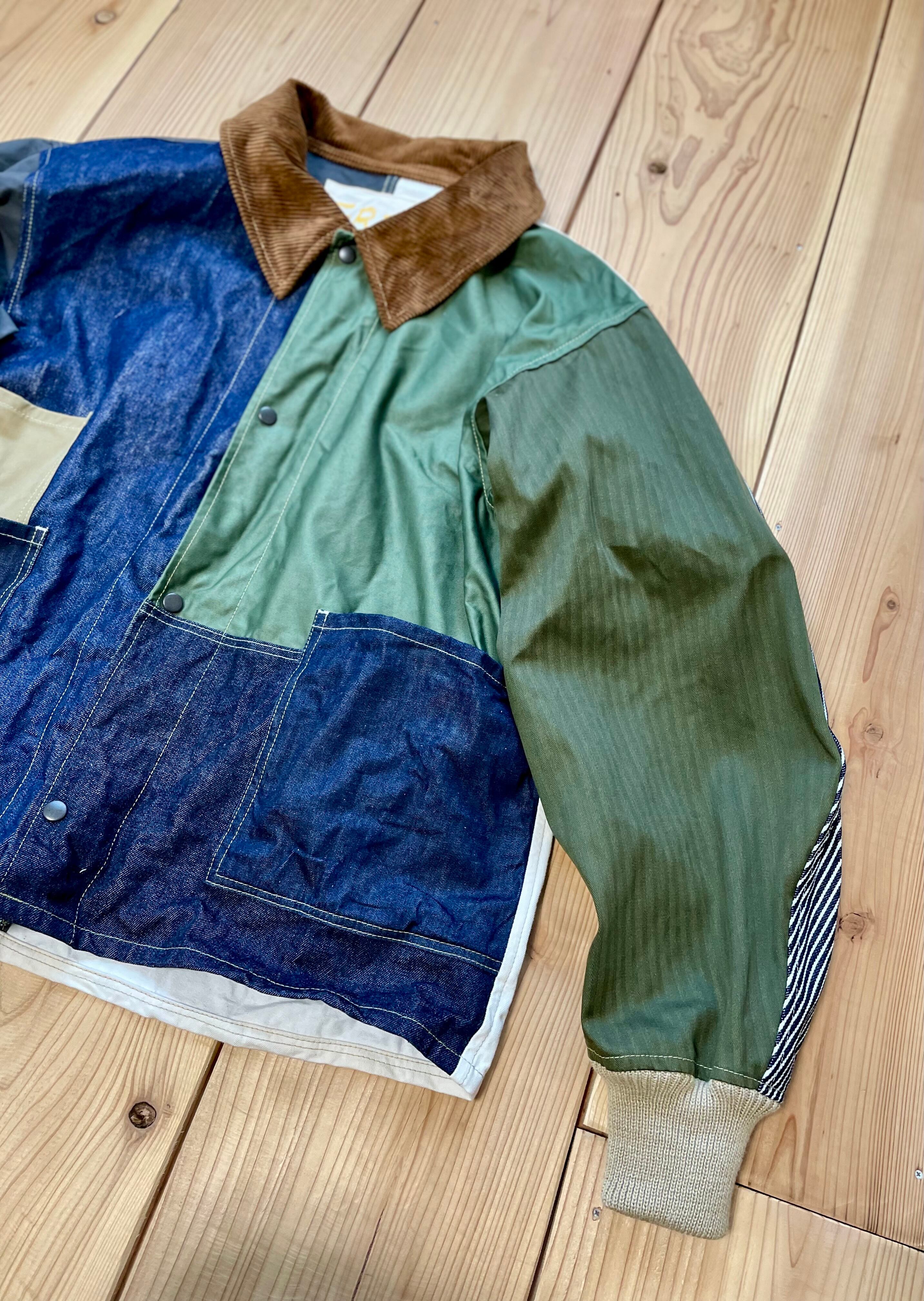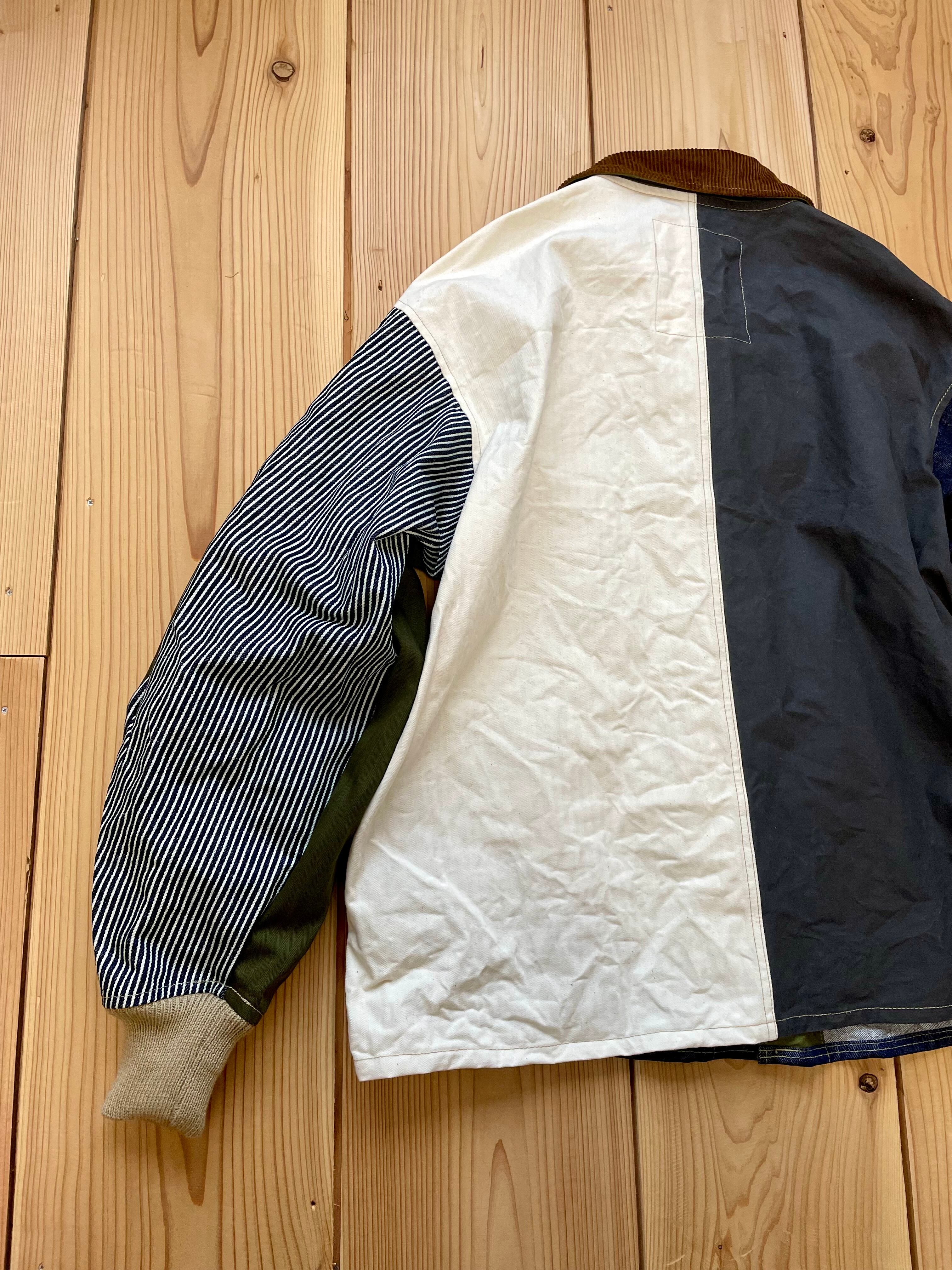 コットン生地で、デニム、ヘリンボーン、ヒッコリー、ツイル生地などをランダムなカラーで組み合わせてみました。